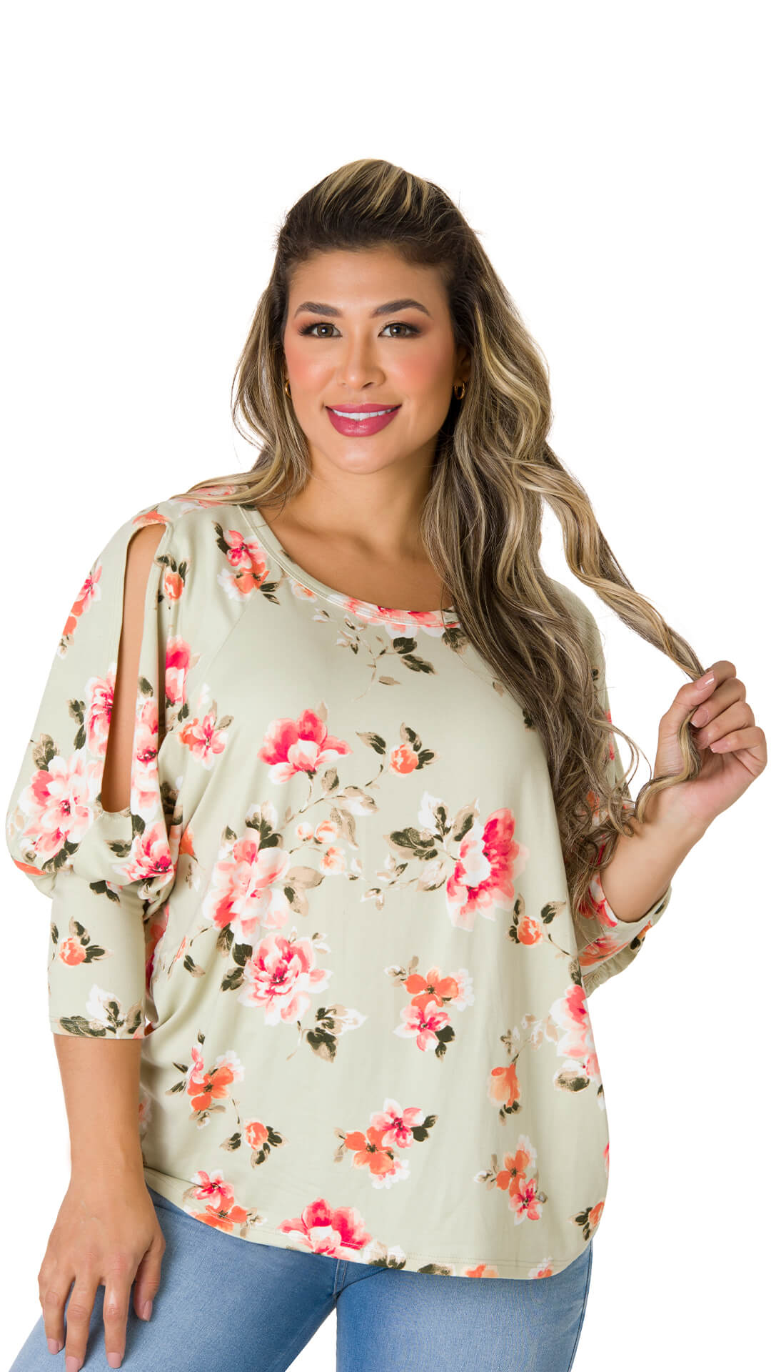 Esta hermosa blusa floral de manga 3/4 con abertura es perfecta para añadir un toque de estilo a tu guardarropa. Su diseño elegante y femenino te hará destacar en cualquier ocasión. El cuello redondo le agrega un toque de sofisticación. Combínala con tus prendas favoritas para lograr un look versátil y moderno. Además, su comodidad incomparable te hará sentir genial durante todo el día.