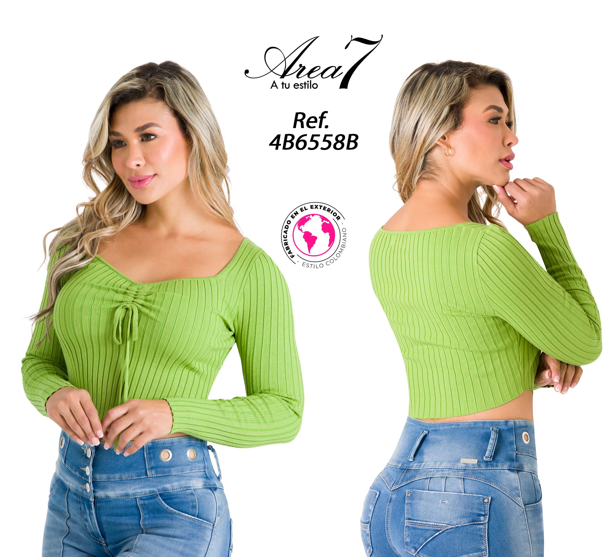 Dale un giro a tu estilo con esta blusa verde que combina detalles modernos y comodidad absoluta. Combínalo con nuestros jeans levantacola de tiro alto para un look completo. ¡No te quedes sin esta prenda que transformará tu estilo!
