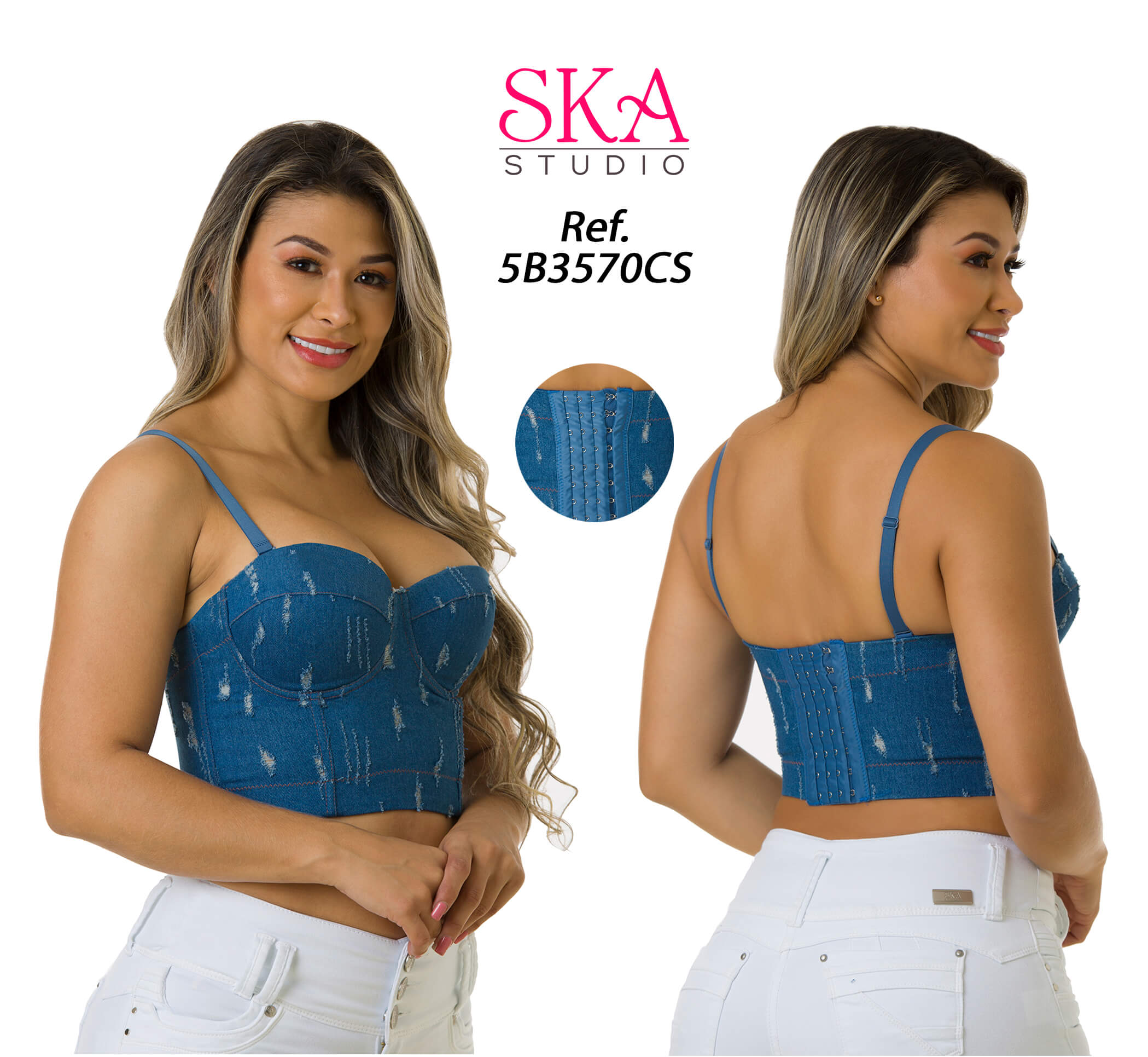 Ajuste Posterior Con Broche Casual Composicion Algodon, Nylon Y Polyester Cuello Corazon Estilo Corset Sin Mangas