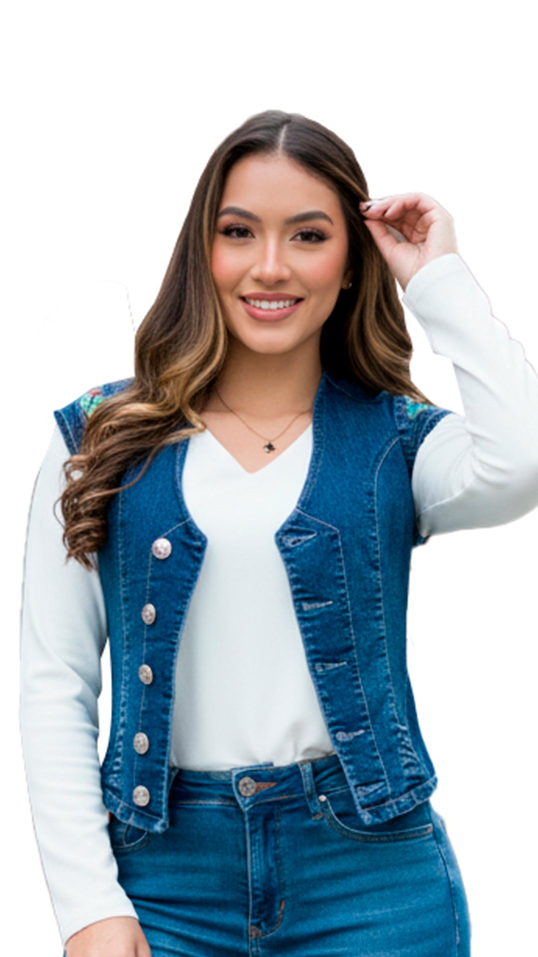 Este chaleco de mezclilla con manga corta es una combinación perfecta de estilo casual y femenino. El tejido de mezclilla ligera ofrece comodidad y durabilidad, ideal para cualquier ocasión informal. Los detalles en flores añaden un toque encantador y distintivo. Este diseño no solo realza tu outfit diario, sino que también celebra la frescura y la alegría de la primavera en cada detalle. Perfecto para combinar con jeans o una falda, este chaleco en mezclilla con flores se convertirá en tu nueva prenda favorita esta temporada.
