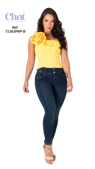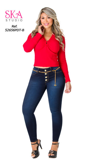 Isabelle Jeans Skinny Levanta Cola Tiro Alto 71025DPAP-B - Azul Oscuro