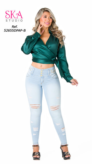 Nuestro jean levanta cola son confeccionados a mano con un sistema de horma perfecta y ajuste ideal para todas las medidas. Estos levantacola cuentan con tecnología de PUSH UP que te ayudará a levantar y moldear tus glúteos. Nuestra marca de jean levantacola está siempre en tendencia con diversidad de estilos que estilizan tus piernas y pretinas las cuales controlan y reducen tu abdomen haciéndote lucir perfecta con cualquier outfit.