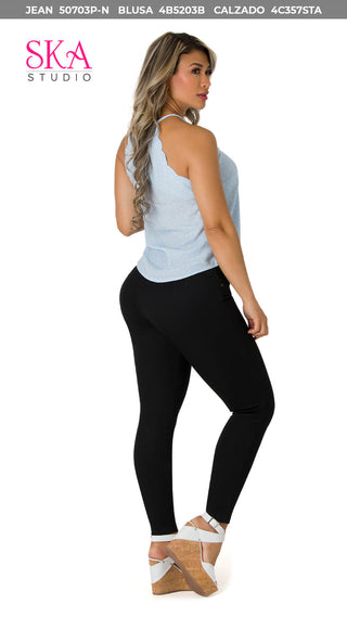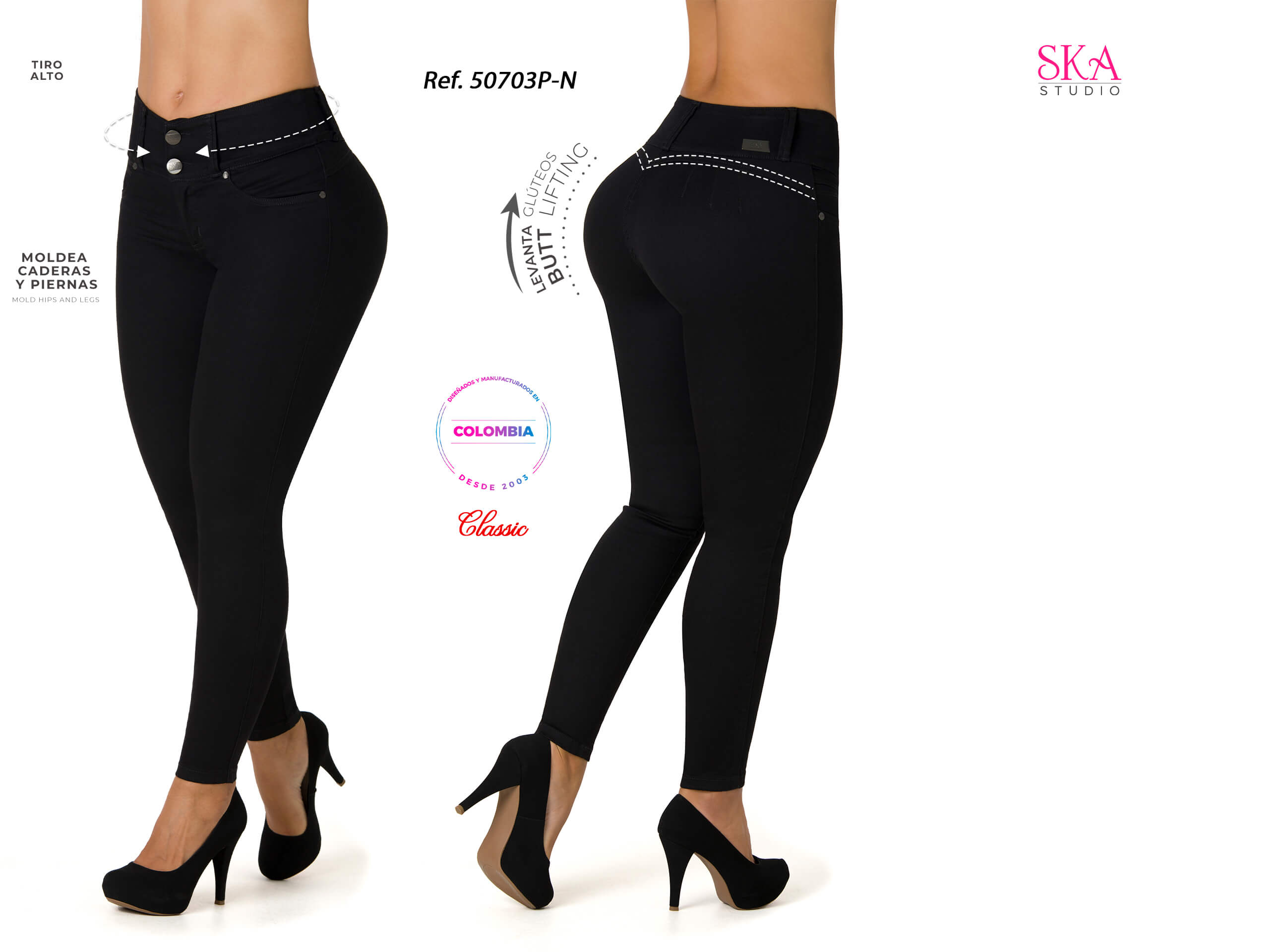 Este jean es un básico imprescindible para todos los closet femeninos. Su diseño levanta y da forma a tu trasero, gracias a su tiro alto y su largo perfecto que termina justo por debajo de la cintura este modelo de jean es muy cómodo y perfecto para cualquier ocasión.