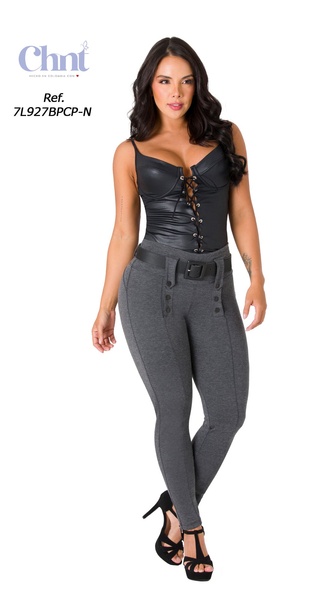 Legging levantacola en color gris con pretina control, diseñado para realzar tus curvas. Incluye un cinturón que añade un toque moderno y elegante. Confeccionado en tela de alta calidad, es ideal para un look casual o formal. ¡Perfecto para quienes buscan estilo, comodidad y definición en una sola prenda!