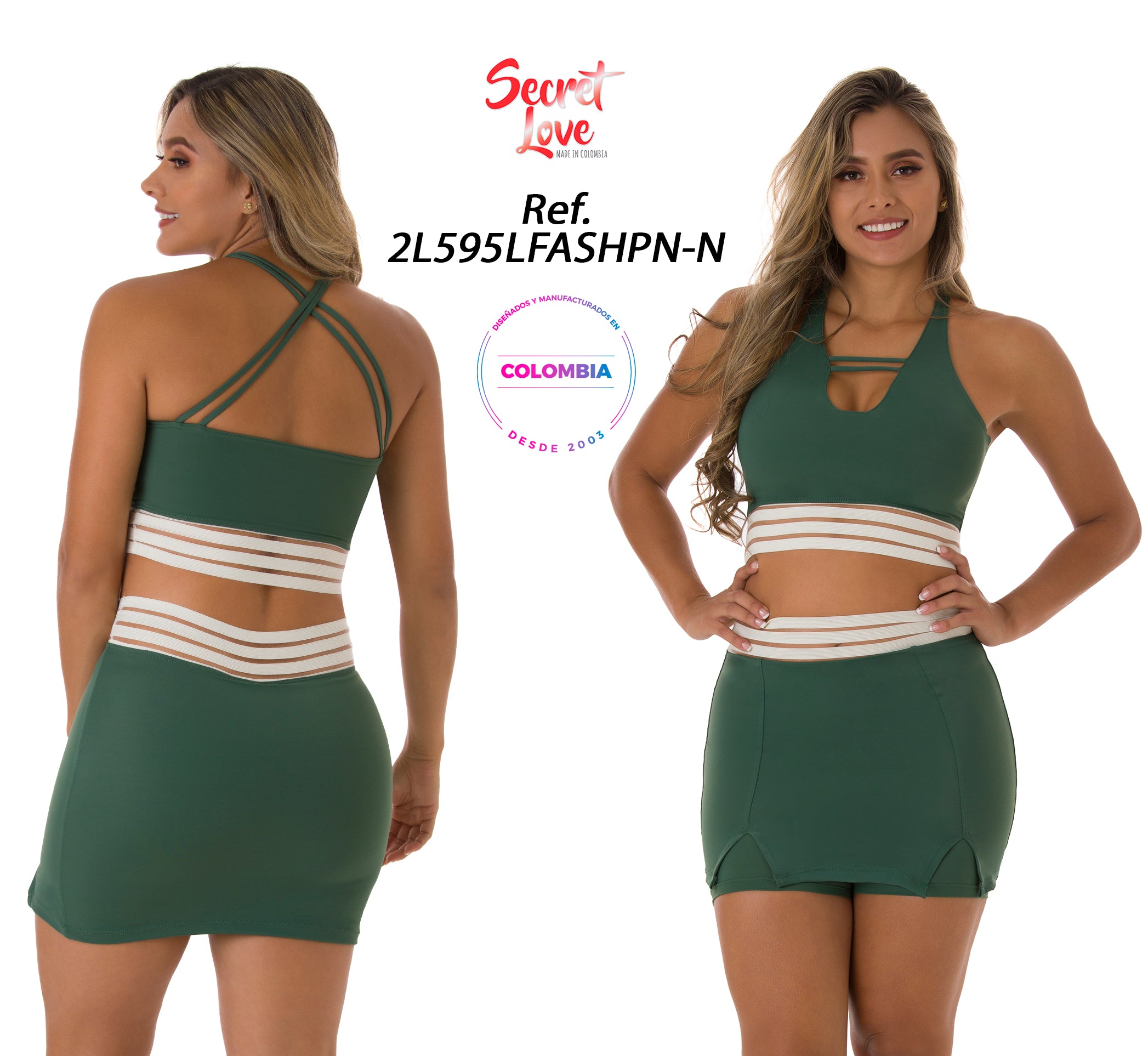 Este conjunto deportivo de falda y top te ofrece comodidad y estilo. la falda tiene un estilo de cortes en falda y cuenta con short interno que añade comodidad y practicidad que la hace ideal para tus entremientos, El top, con cuello en V y con tiras decorativa te da un toque unico de estilo, crea tu look deportivo con este conjunto con un toque moderno.
