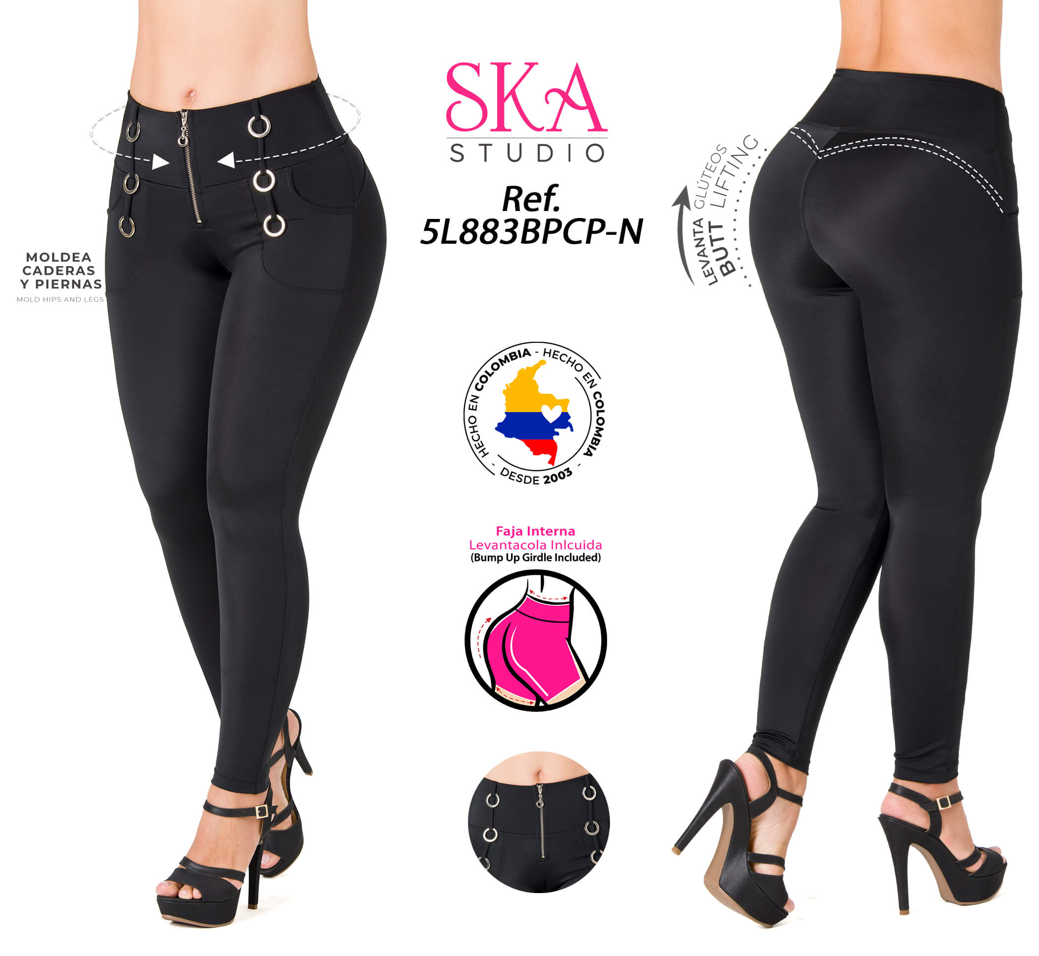Este legging levanta cola hace que tu abdomen se vea más estilizado. Cuenta con faja interna lo cual te brinda control y moldea tus caderas y piernas haciendote lucir una figura más definida. Su diseño te dará un look más sofisticado y diferente por sus detalles en pretina. Es perfecto para muchos outfits: informales, casuales, para viajes, reuniones. Atrévete a combinarlo con una blusa crop.
