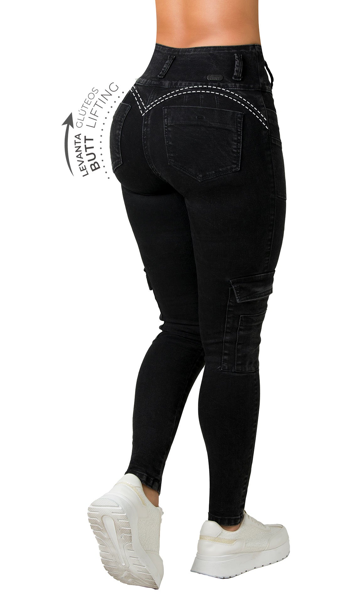 Este jean de tiro alto está diseñado para definir la cintura y realzar caderas y piernas con un ajuste cómodo y favorecedor. Sus costuras estratégicas y bolsillos tipo cargo aportan un estilo moderno y urbano que marca tendencia, mientras su silueta ajustada crea un efecto visual estilizado y poderoso.