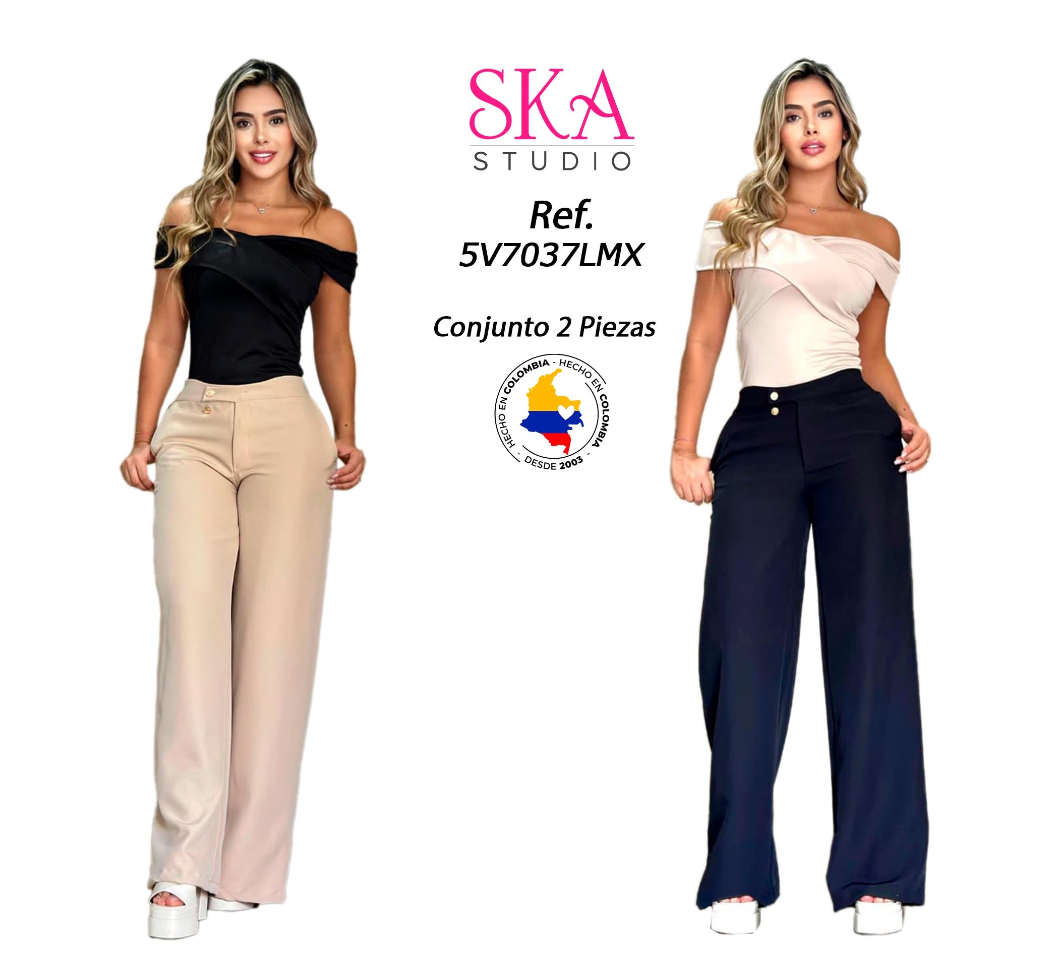 Un conjunto pensado para mujeres que aman verse refinadas sin perder comodidad. El top off-shoulder aporta un toque femenino y sutil, mientras el pantalón de caída amplia ofrece una línea sofisticada que estiliza la figura.