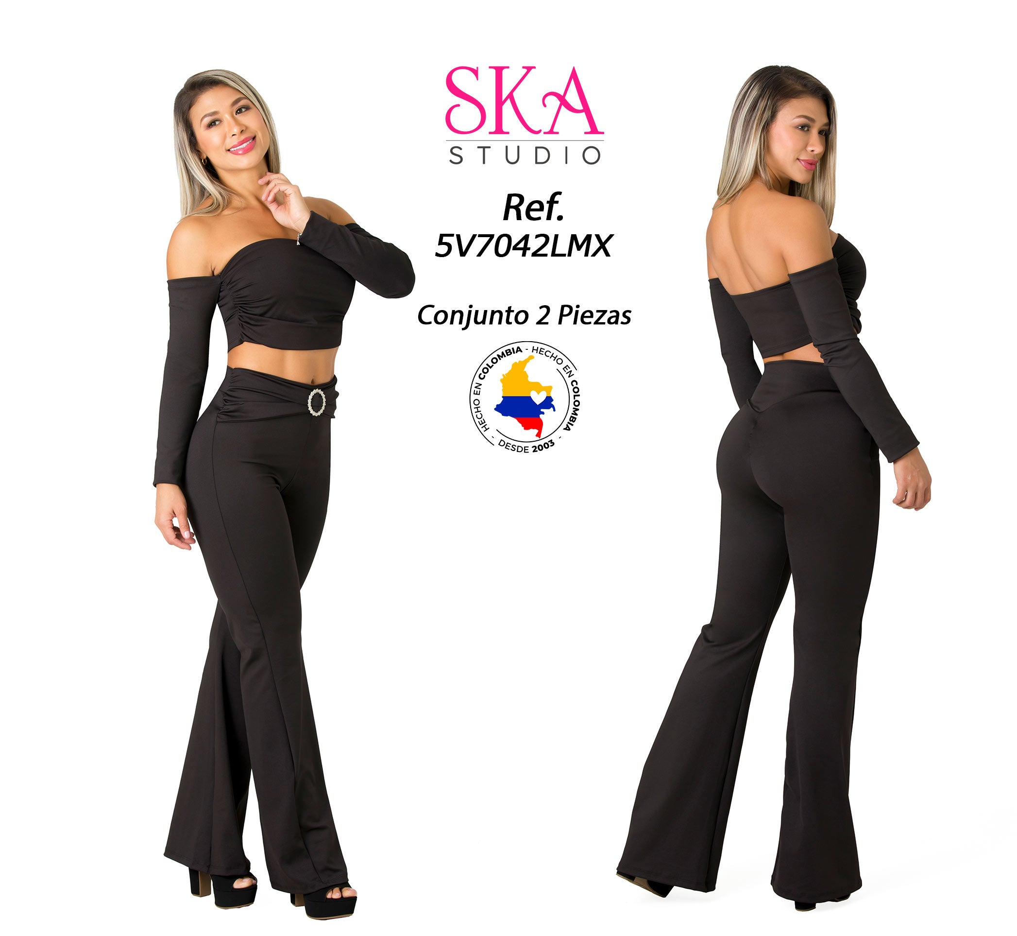 Este conjunto de top off-shoulder y pantalón flare realza la figura con un diseño ajustado, femenino y lleno de actitud. El top de manga larga aporta un toque chic y moderno, mientras el pantalón de bota ancha crea una silueta alargada y súper favorecedora.