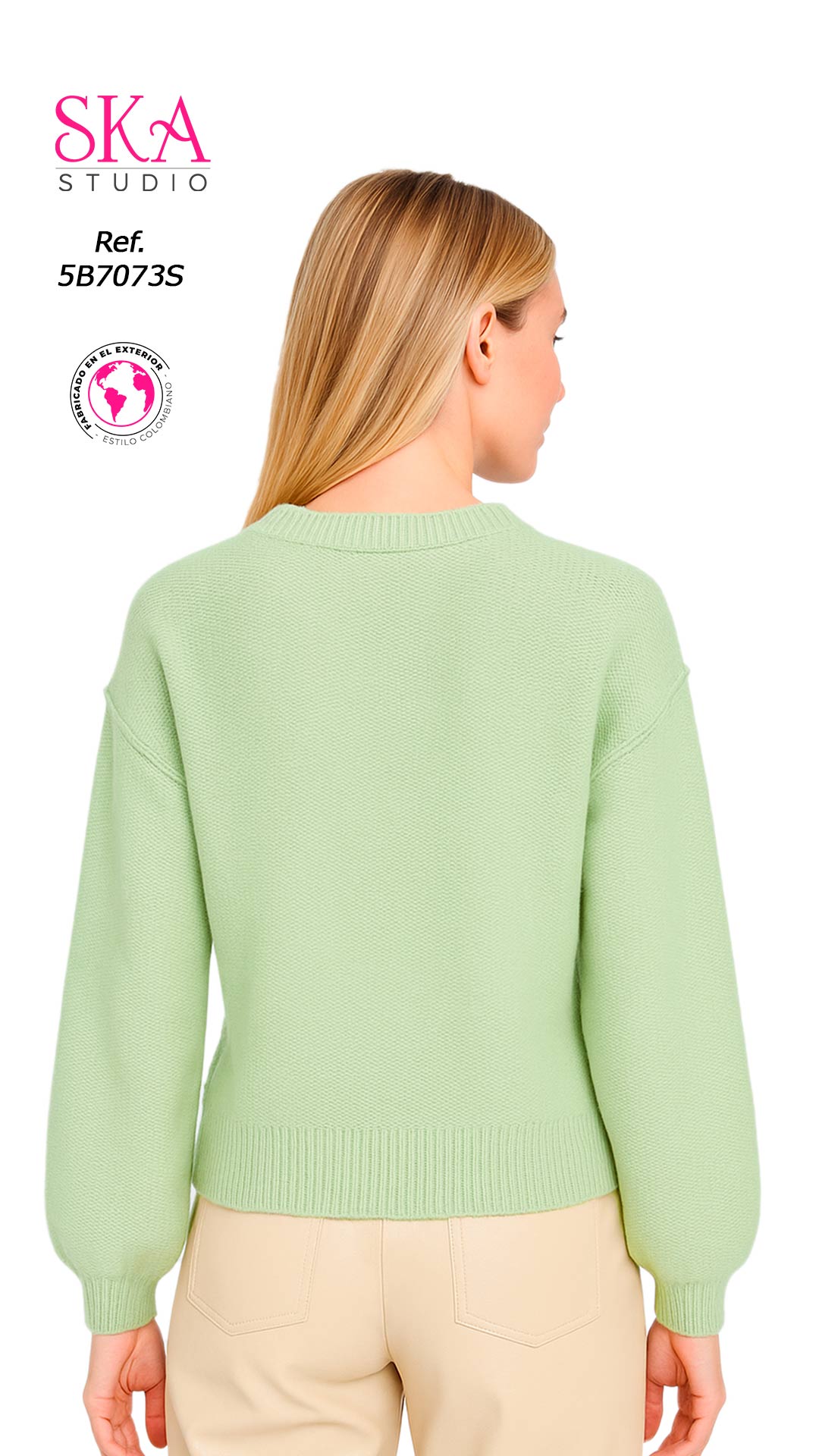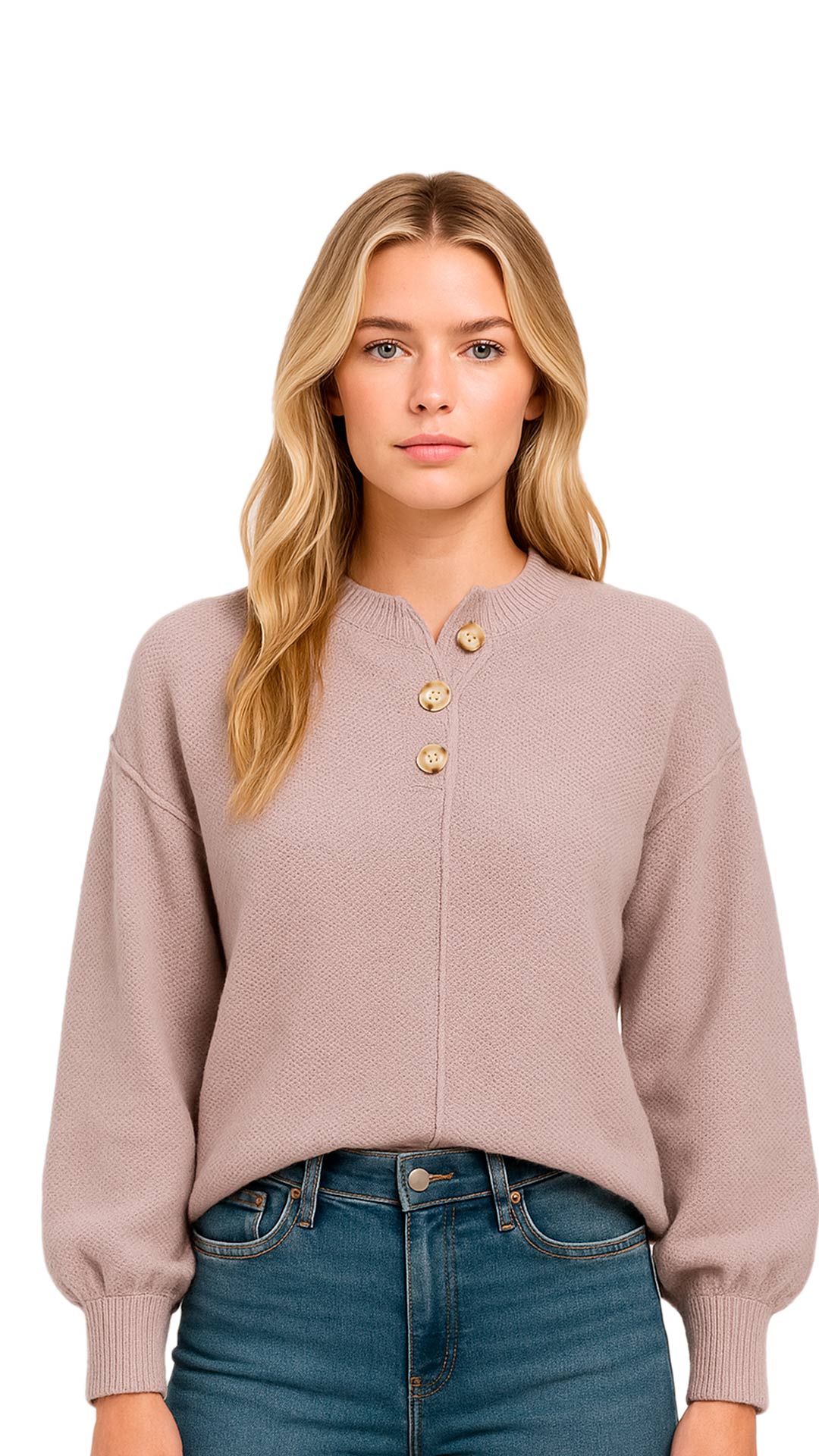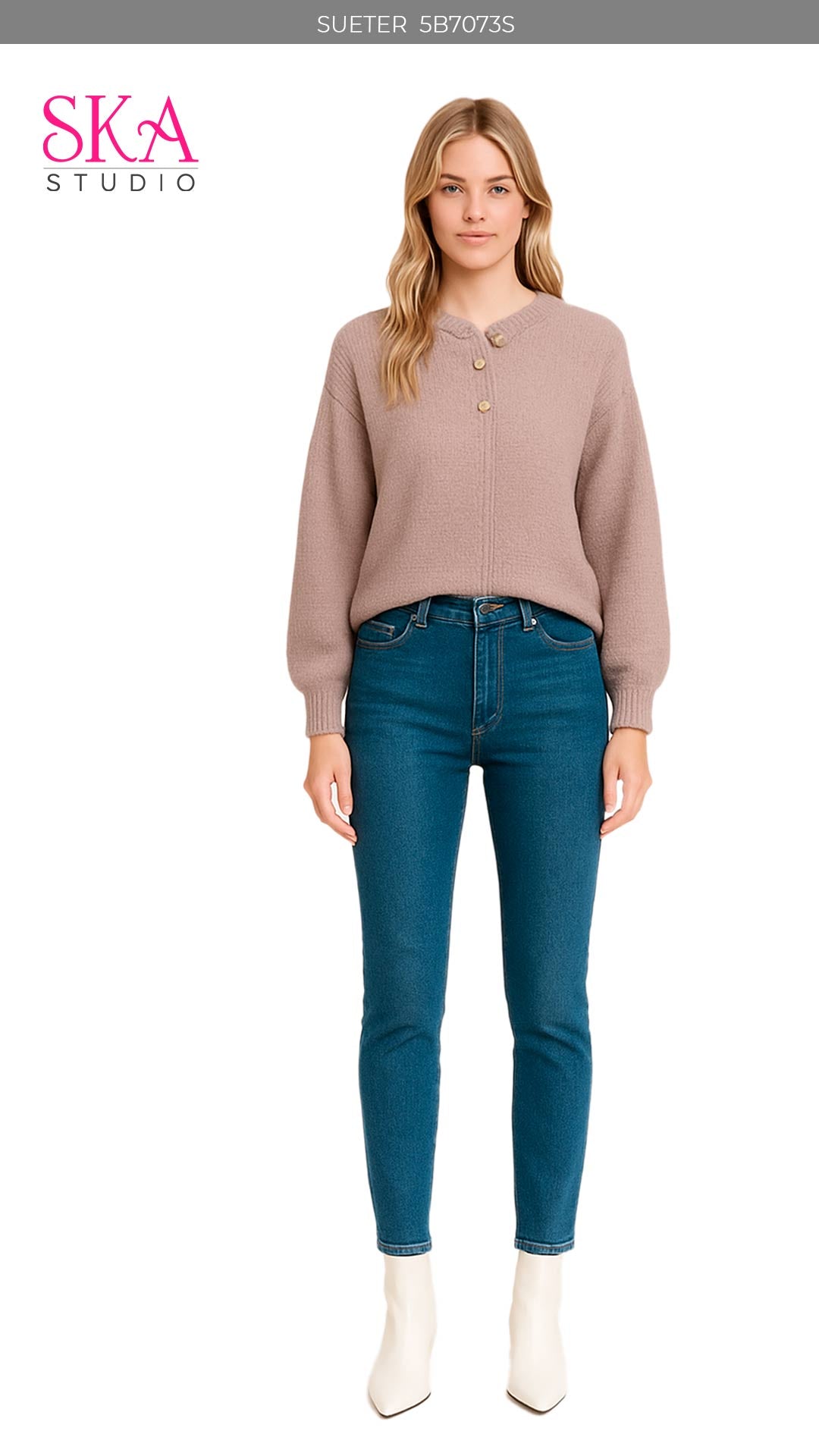 Este diseño destaca por su textura suave y su silueta relajada que brinda comodidad sin perder elegancia. El detalle de sus botones frontales añade un toque chic y actual, perfecto para darle personalidad a tus outfits del día a día. Versátil, femenino y fácil de combinar con jeans, faldas o pantalones clásicos. Ideal para crear looks casuales con un toque sofisticado. ¡Un suéter que te hace ver moderna, sencilla y totalmente estilosa!