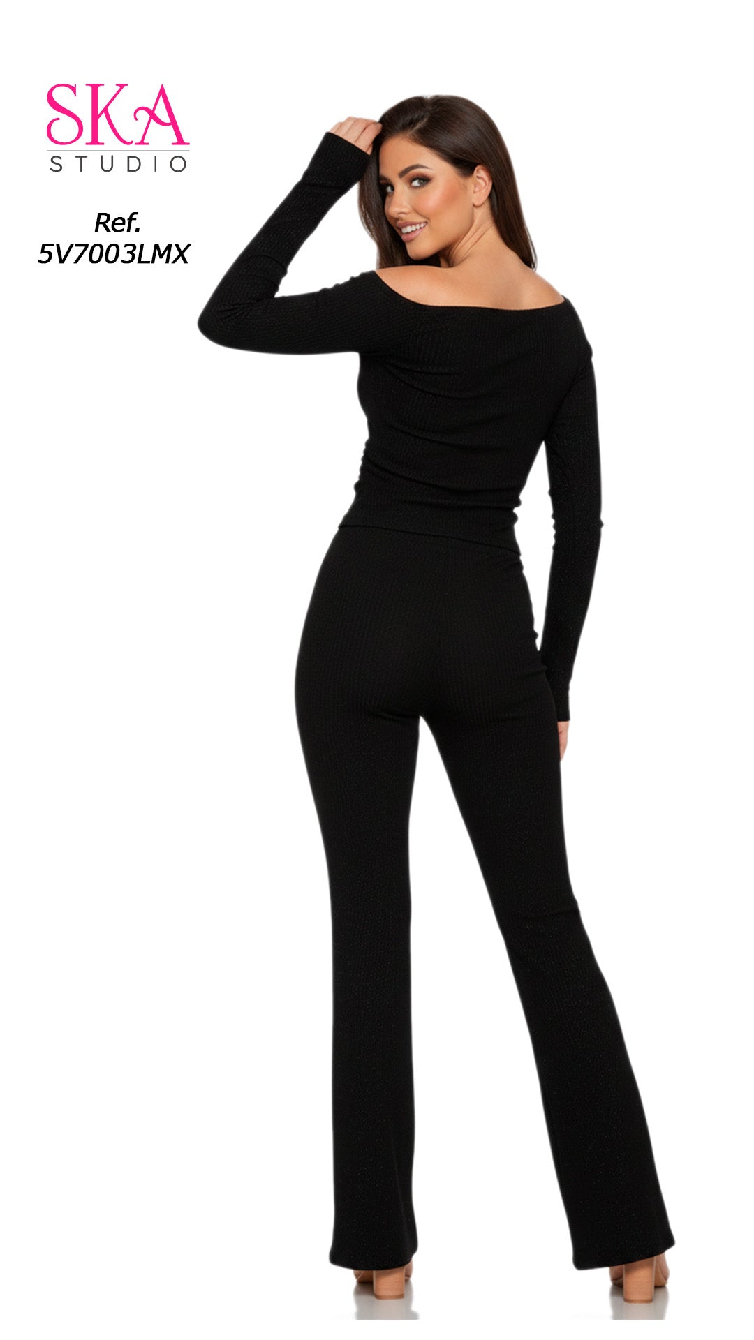 Enamórate del poder con este conjunto tejido de dos piezas, diseñado para mujeres seguras, modernas y con estilo. Su tejido elástico y suave se ajusta perfectamente al cuerpo, realzando tu figura mientras te brinda total comodidad.