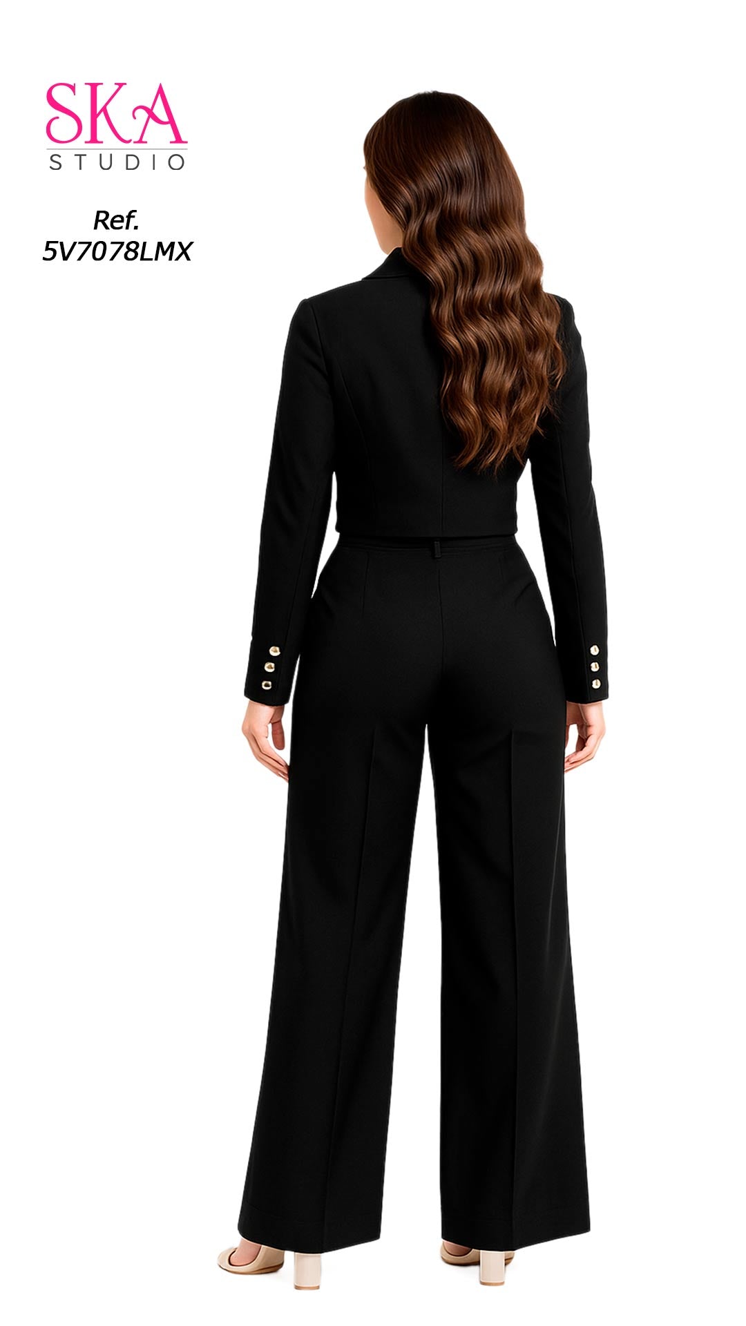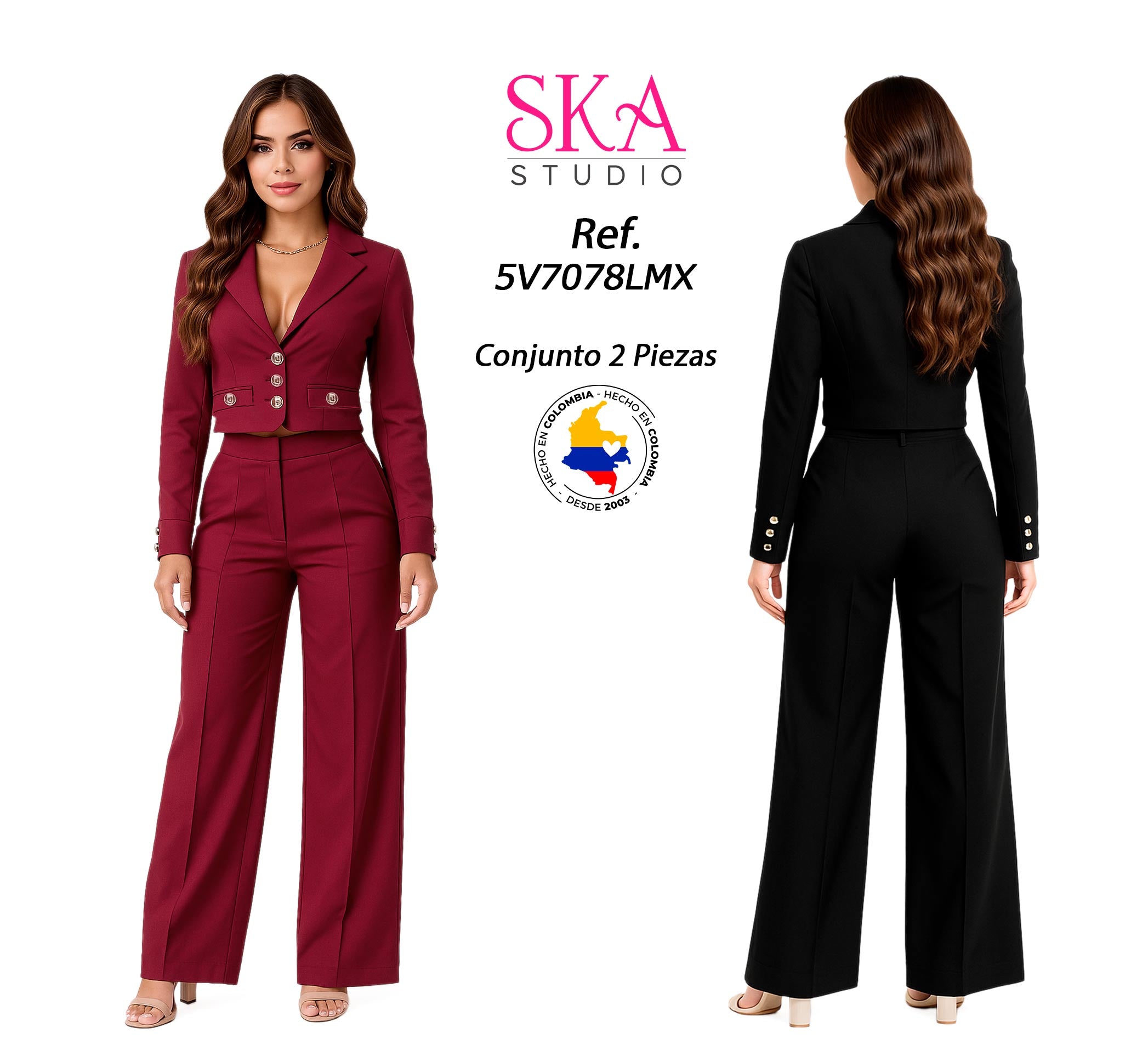 Conquista cada mirada con este espectacular set de dos piezas, diseñado para mujeres modernas, seguras y con mucho estilo. Su blazer corto tipo sastre con botones metálicos destaca la cintura y crea una figura estilizada, mientras el pantalón tiro alto y bota ancha alarga visualmente las piernas y ofrece comodidad total. Ideal para eventos, oficina chic, cenas especiales o noches donde quieres impactar.