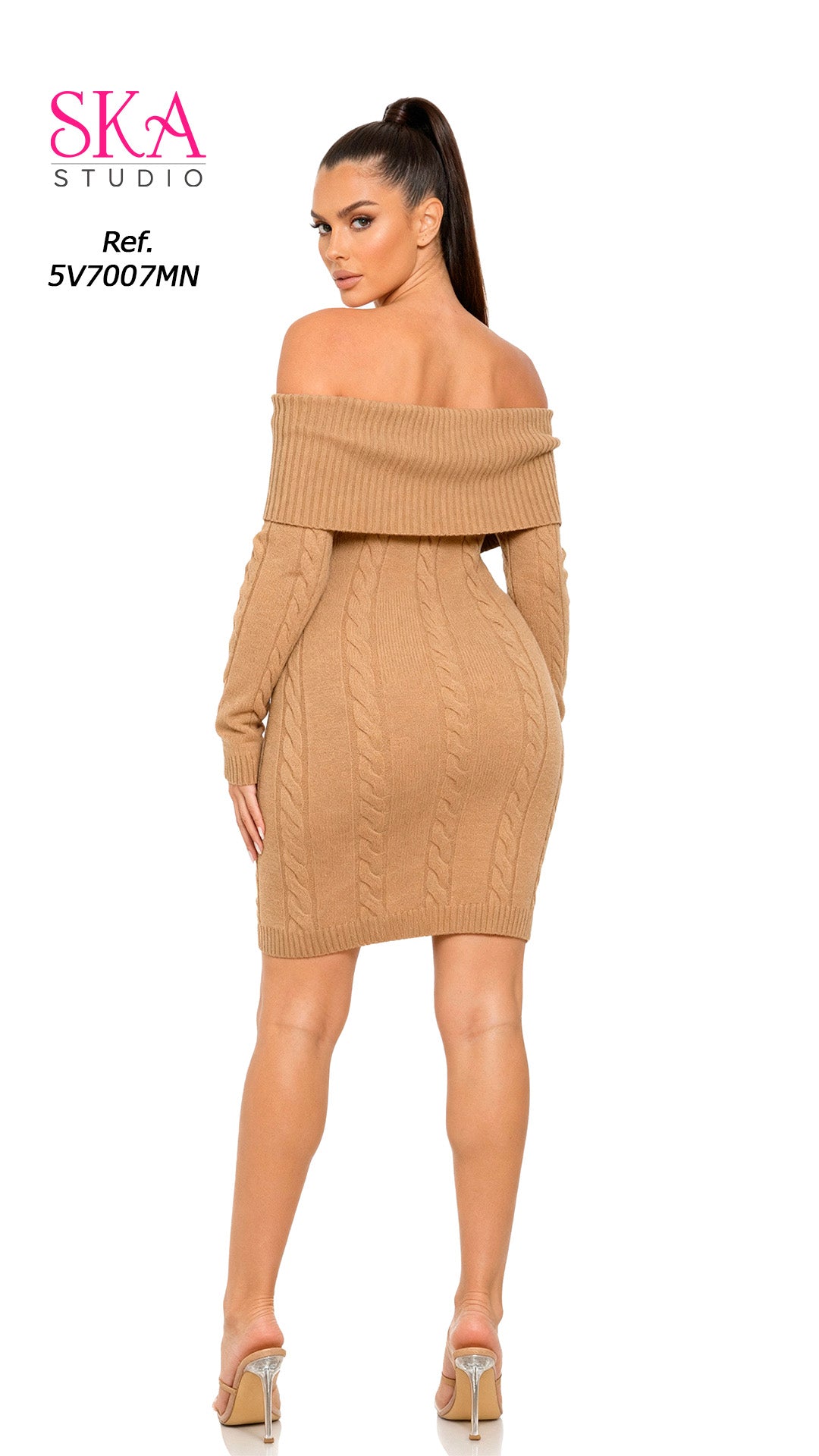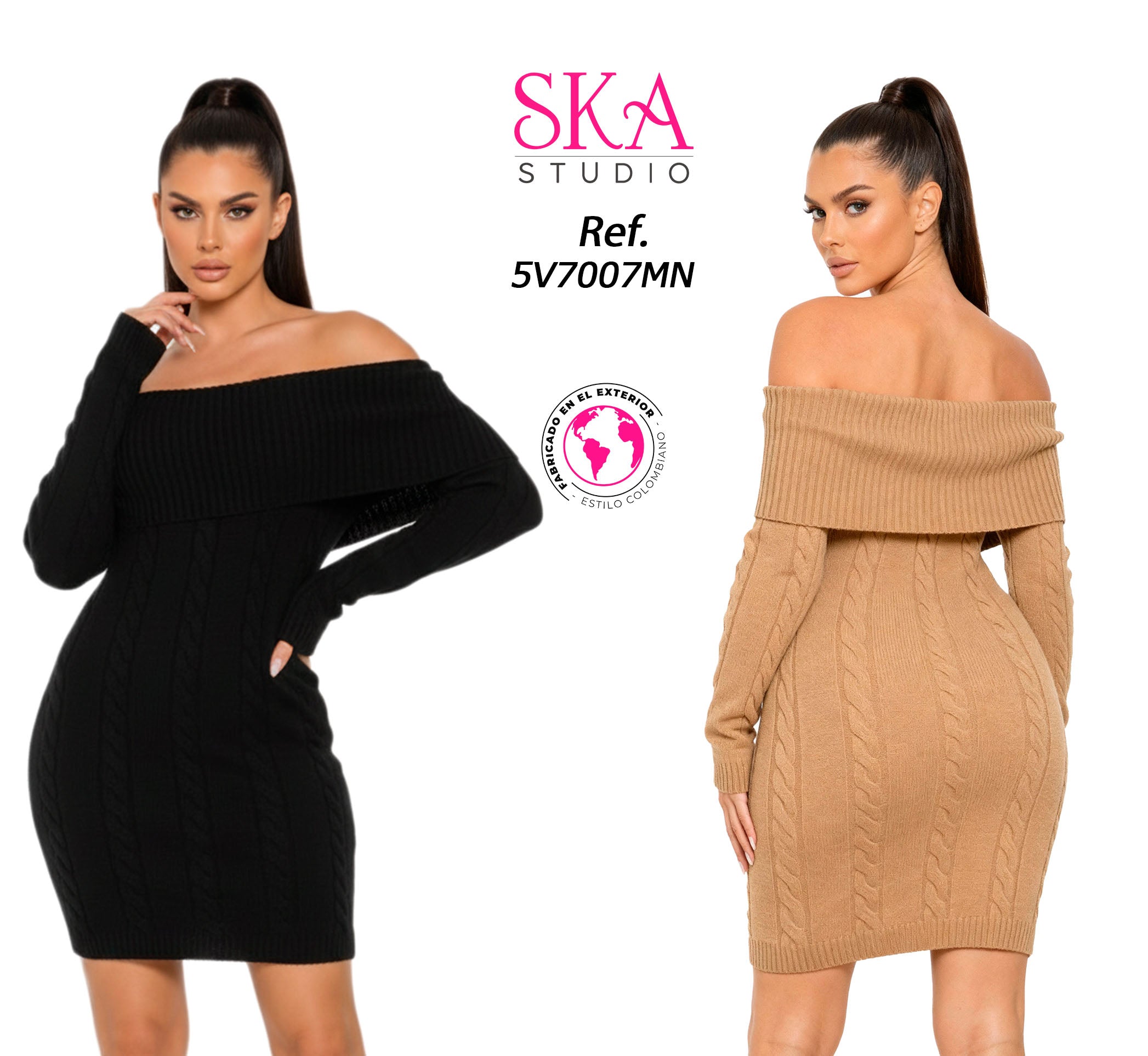 Luce irresistible con este vestido tejido negro off shoulder, una prenda que combina sensualidad, elegancia y comodidad en un solo diseño. Su textura acanalada con detalles trenzados se adapta perfectamente a tu figura, realzando tus curvas con un toque sofisticado.