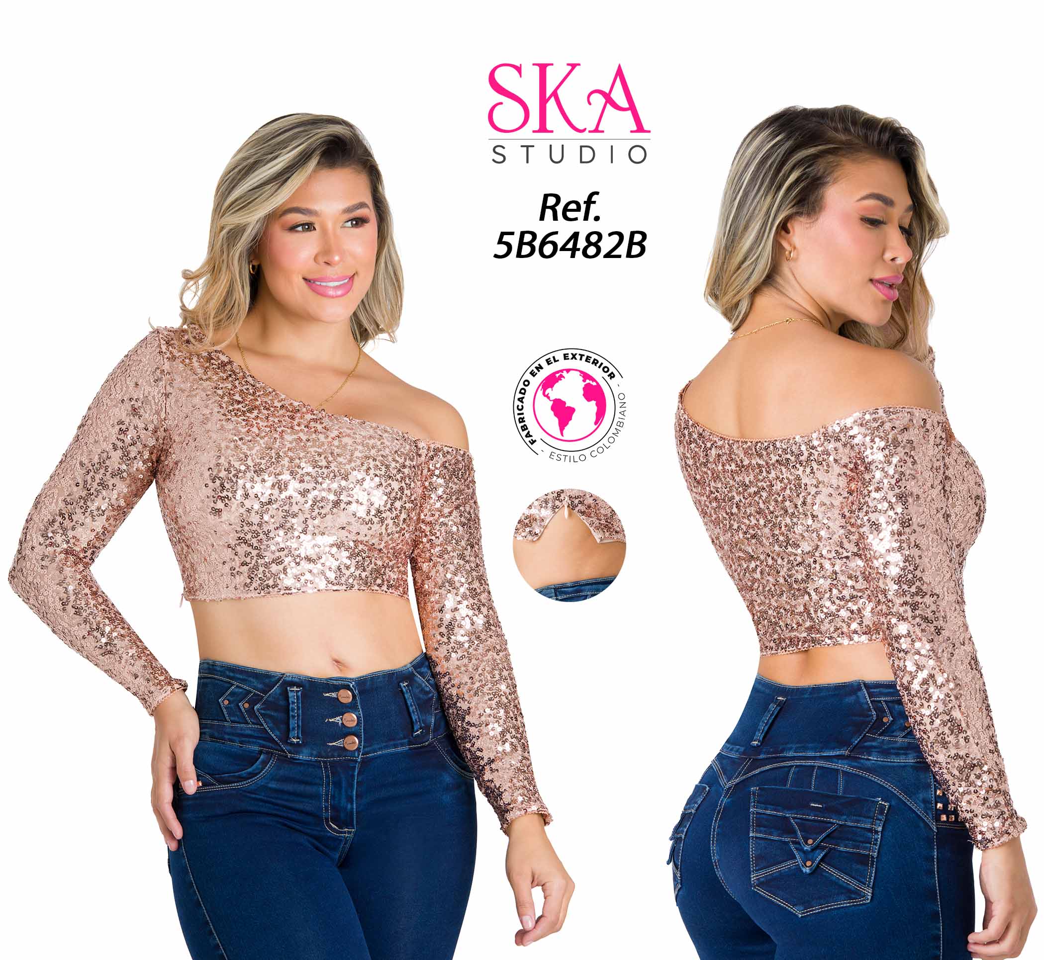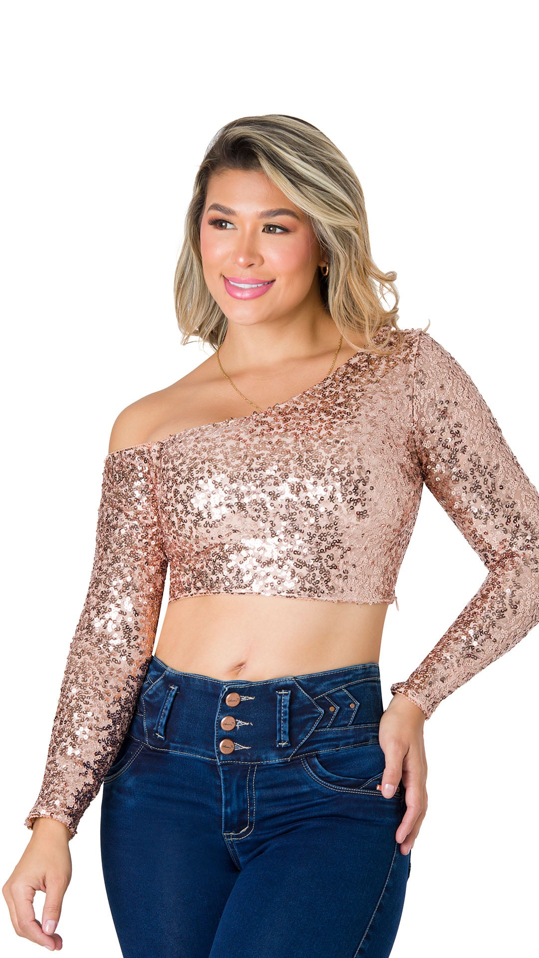 Shine spectacularly at your next night out with this sequin blouse. Its one-shoulder design creates a modern and chic look that is sure to catch everyone's eye. It's the perfect piece to add a touch of sparkle to your outfit. Pair it with your favorite jeans or leggings.