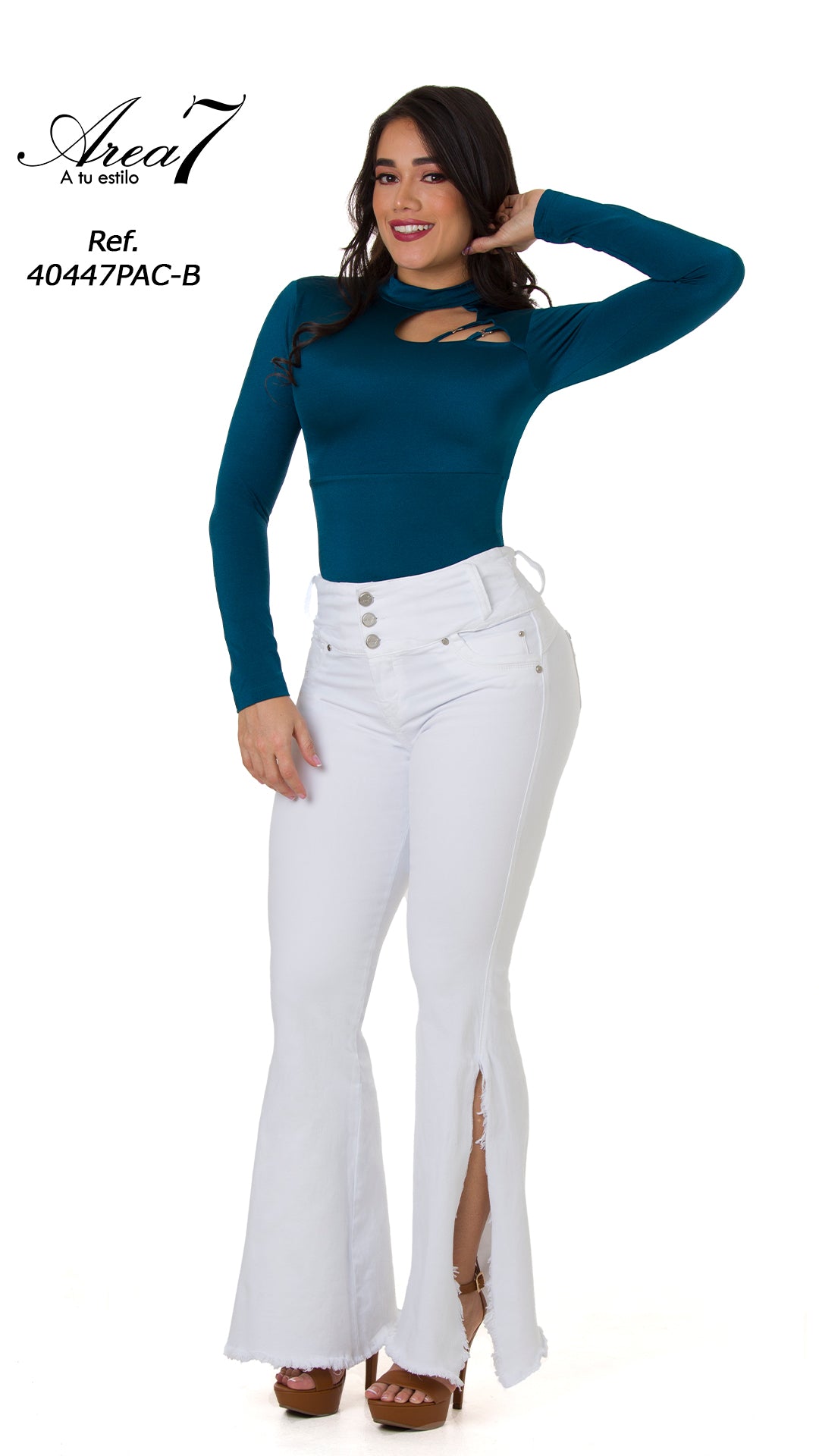 This butt lifter jean has a bell boot, this design is characterized by having a flared opening at the knee that gives a sexy and modern touch, the high rise will help you to compress your tummy hiding those unwanted rolls.