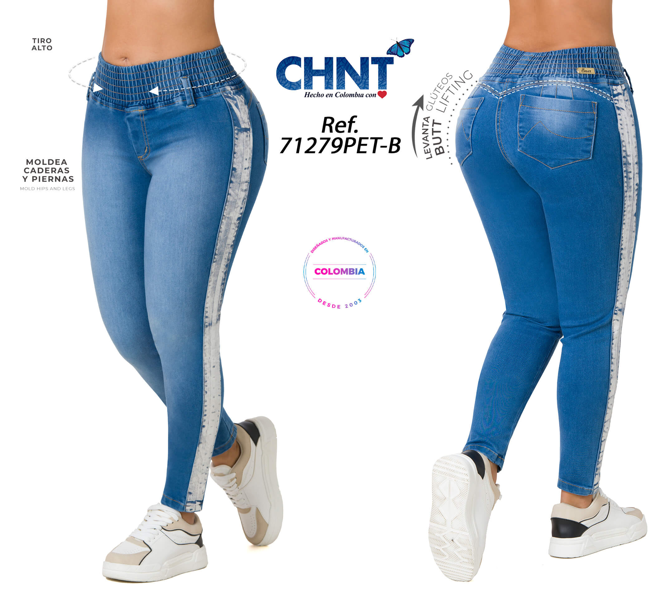 Jean butt liftinng with platead side detail, it has elastic waistband that will make you feel comfortable and will enhance the silhouette of your hips. This garment has an authentic design that you will love, combine it with a crop top and wear it for your next outing with friends, you will steal more than a sigh!