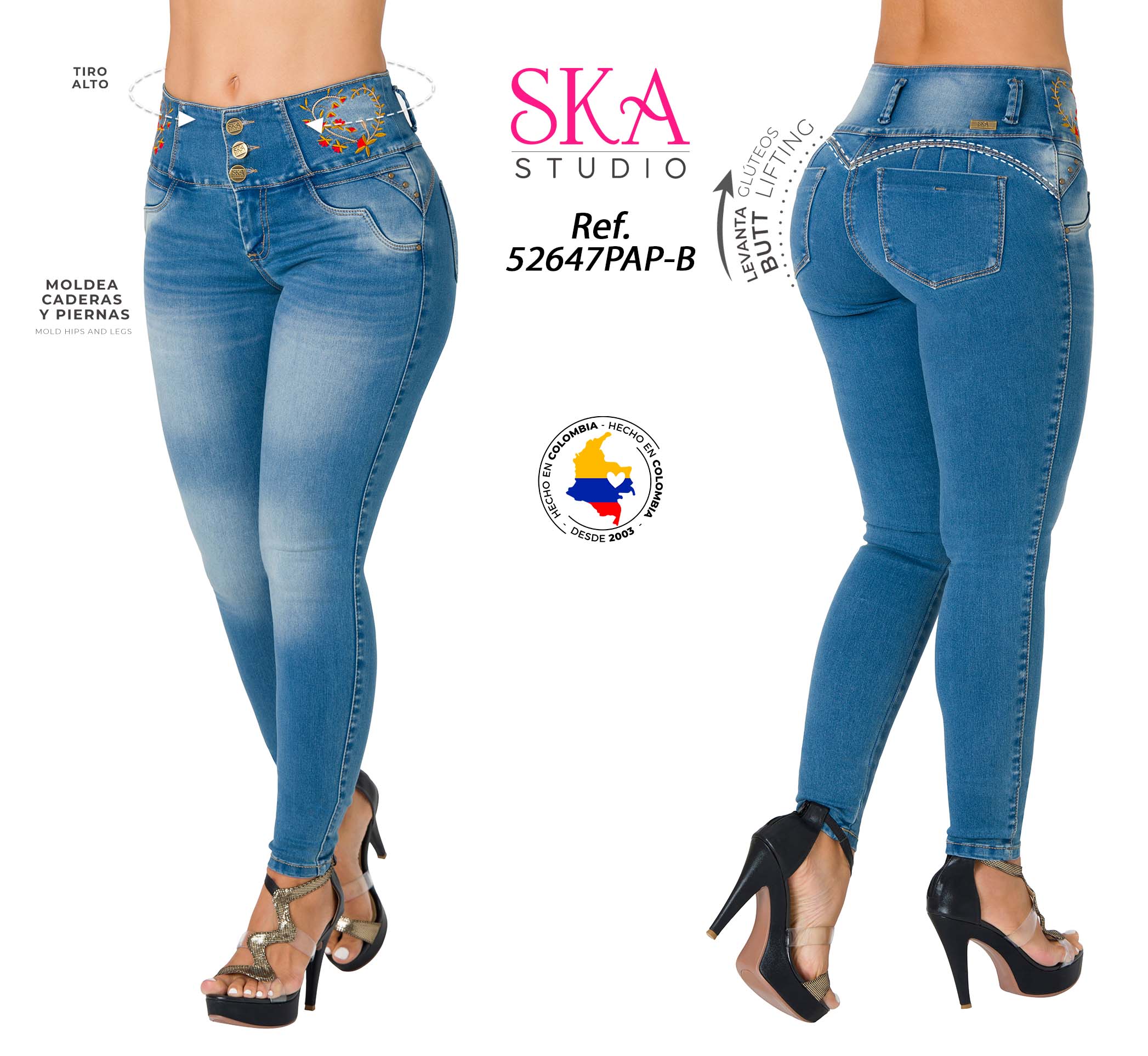 Renew your wardrobe with these high-waisted butt-lifting jeans, designed to highlight your figure and add a unique touch to your outfits. With delicate embroidery on the waistband, these jeans are the perfect combination of fashion and comfort. Ideal for any occasion.