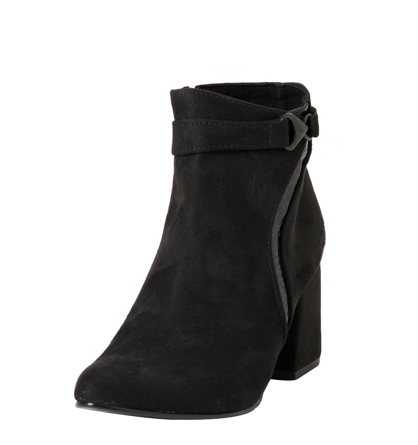Designed to combine comfort and style, these black suede synthetic booties are ideal for your collection. The side buckle detail adds a chic touch, while their minimalist design makes them perfect for wearing with jeans, leggings, or dresses. Versatile and timeless footwear.