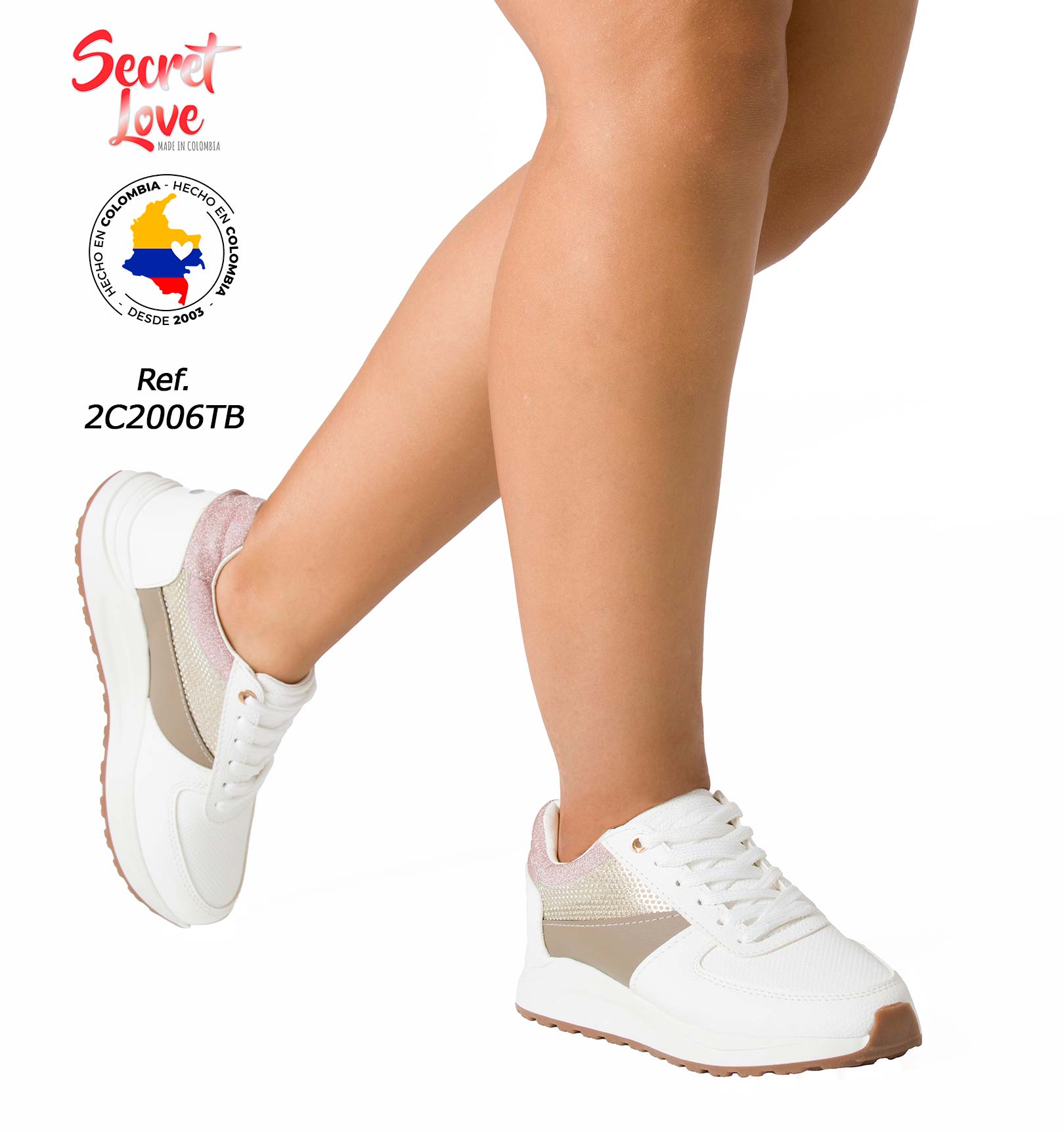 Give your everyday style a boost with these white sneakers. Featuring beige details and a shiny pink heel, they create a modern, feminine look that pairs effortlessly with casual outfits.