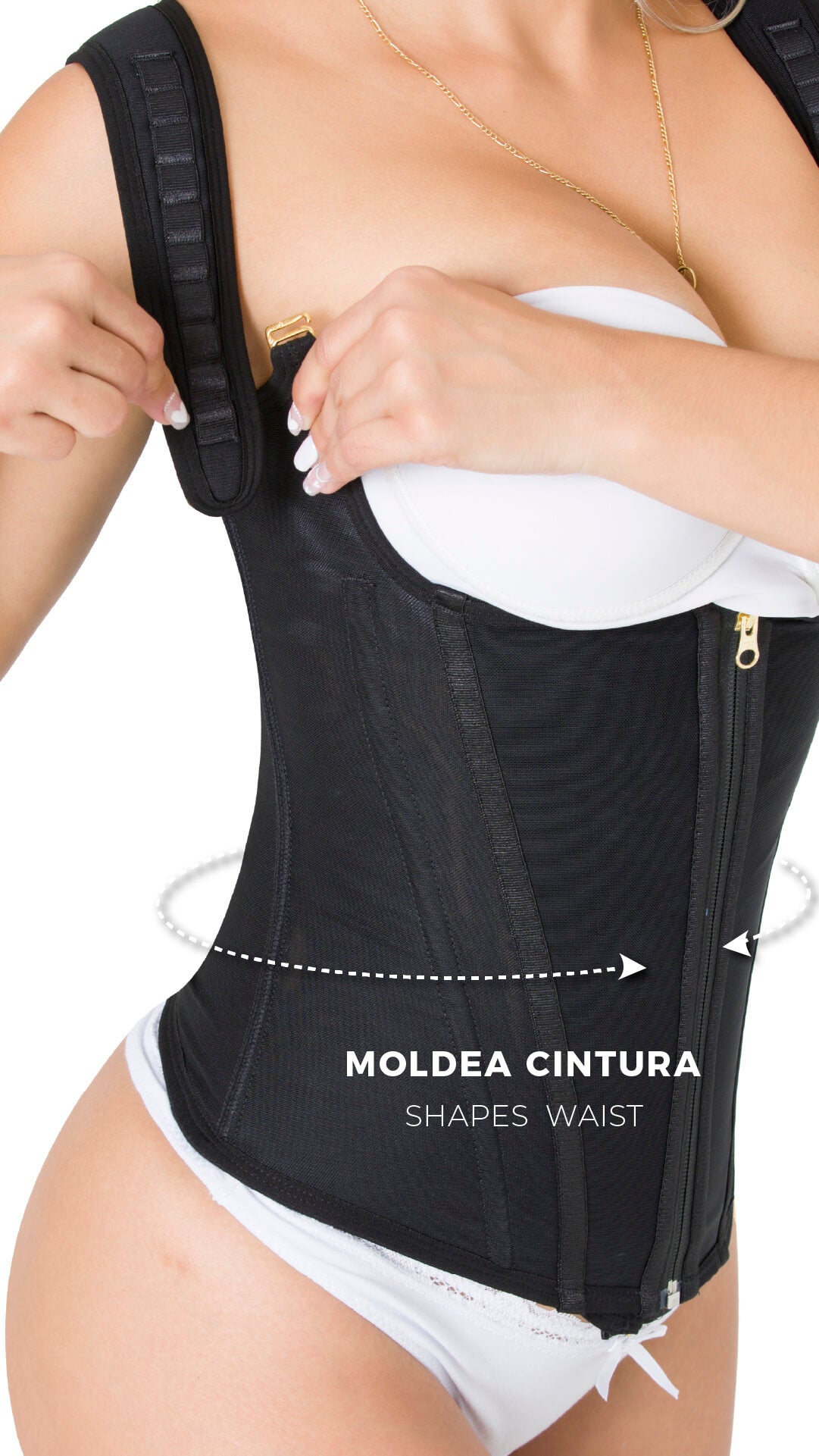 ¡Transforma tu figura y luce espectacular! Este chaleco moldeador está diseñado para estilizar tu silueta, ofrecer soporte y brindarte la confianza que mereces. Ideal para uso diario y rutinas de ejercicio, cuenta con broches y cierre frontal para un ajuste más comodo y tiras graduables. Moldea cintura, abdomen y espalda.