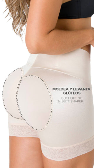 Esta faja short levantacola de compresión media está diseñado para estilizar tu figura brindandote comodidad. Ideal para el uso diario, su diseño discreto se adapta perfectamente bajo cualquier tipo de ropa. Con una cintura alta que moldea el abdomen, este short te ofrece un look estilizado sin sacrificar el confort.