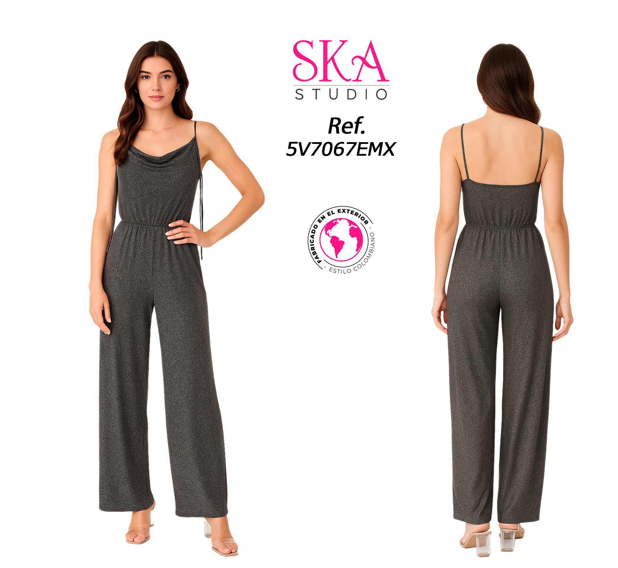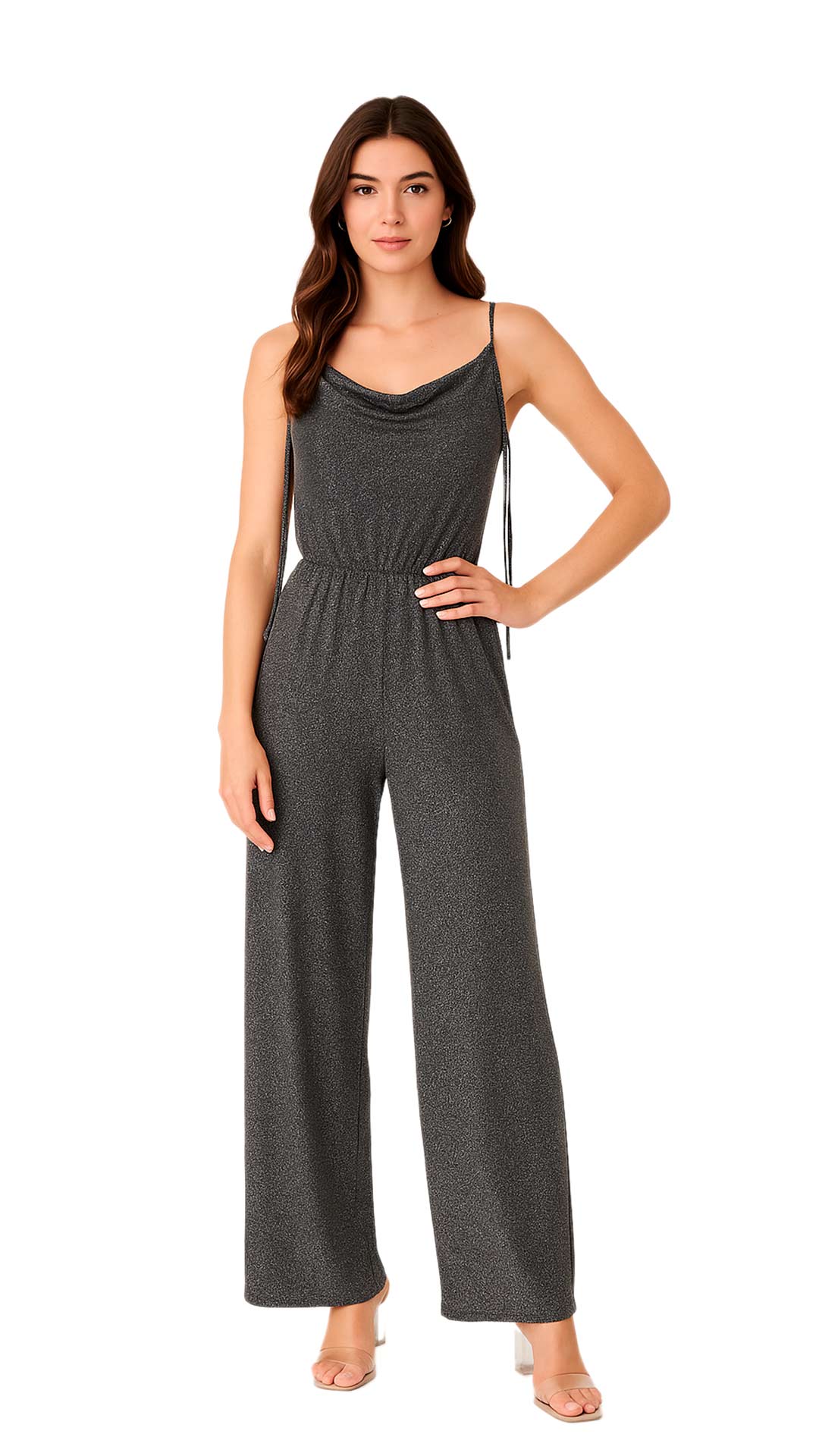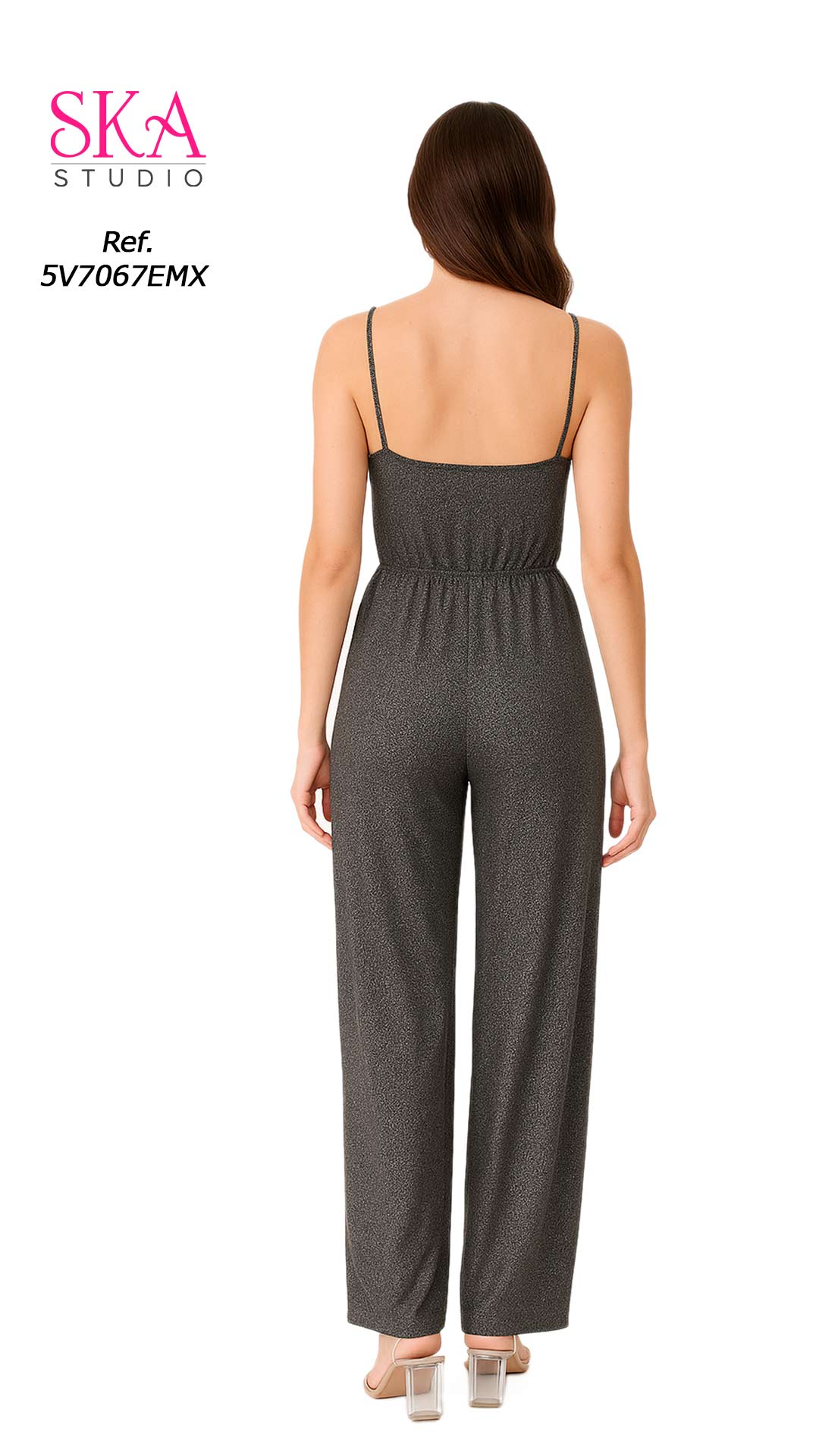 Este diseño de tiras delgadas y escote drapeado combina elegancia moderna con un toque juvenil que te hace destacar al instante. Su tela con sutil efecto brillante realza la figura sin perder frescura, y la cintura ajustada crea una silueta estilizada y súper favorecedora. La bota ancha aporta movimiento y un look sofisticado ideal para noches especiales, salidas con amigas o cualquier ocasión donde quieras verte espectacular sin esfuerzo. ¡Un enterizo ganador que te hará sentir única desde el primer momento!