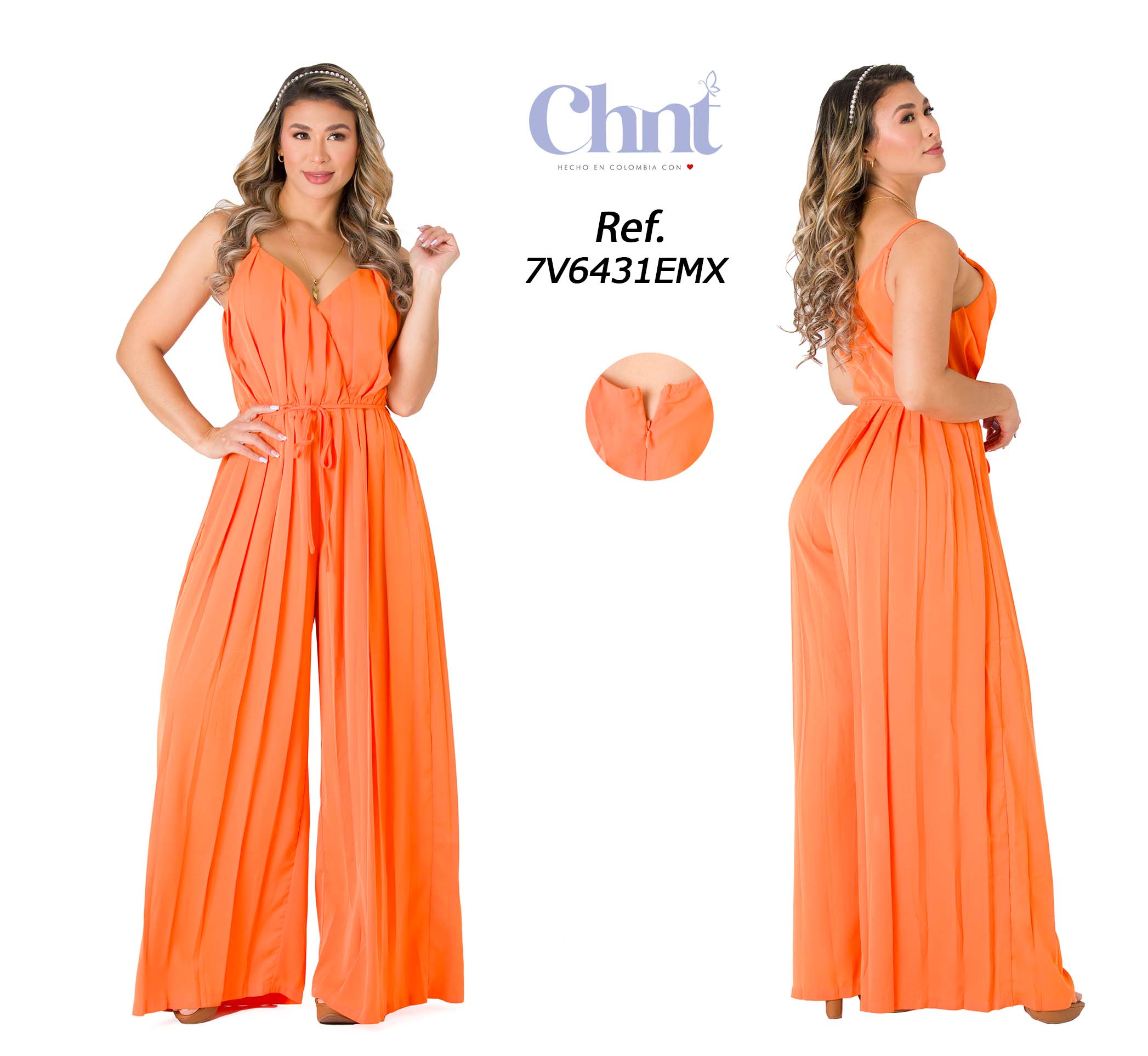 With an eye-catching color, presses throughout the garment giving you a sophisticated touch this jumpsuit will make you be the sensation in every summer, looking fresh and attractive. Ideal to wear with your favorite platforms.