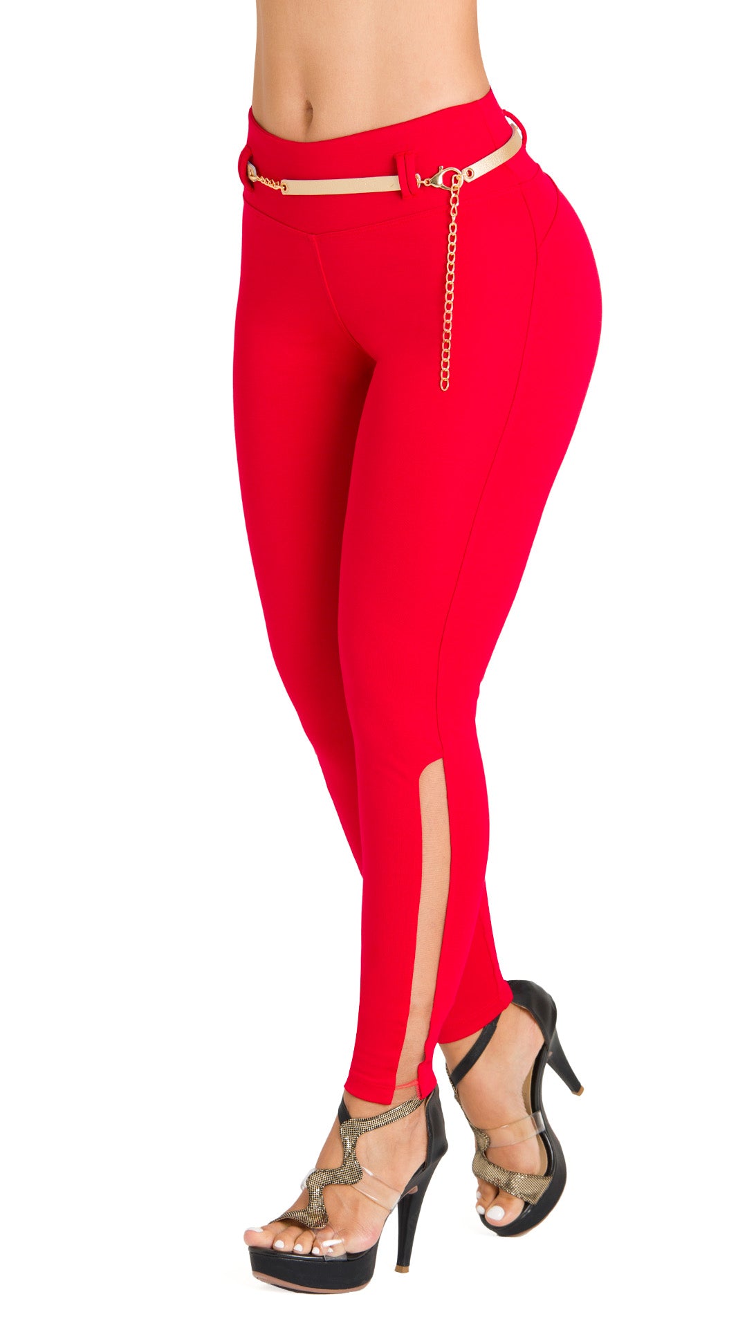These leggings are the perfect combination of comfort and sophistication. With a high-waisted fit that flatters and enhances your figure, this design includes a removable chain belt, ideal for a modern and feminine look. The boot detail adds a unique touch, perfect for any occasion.
