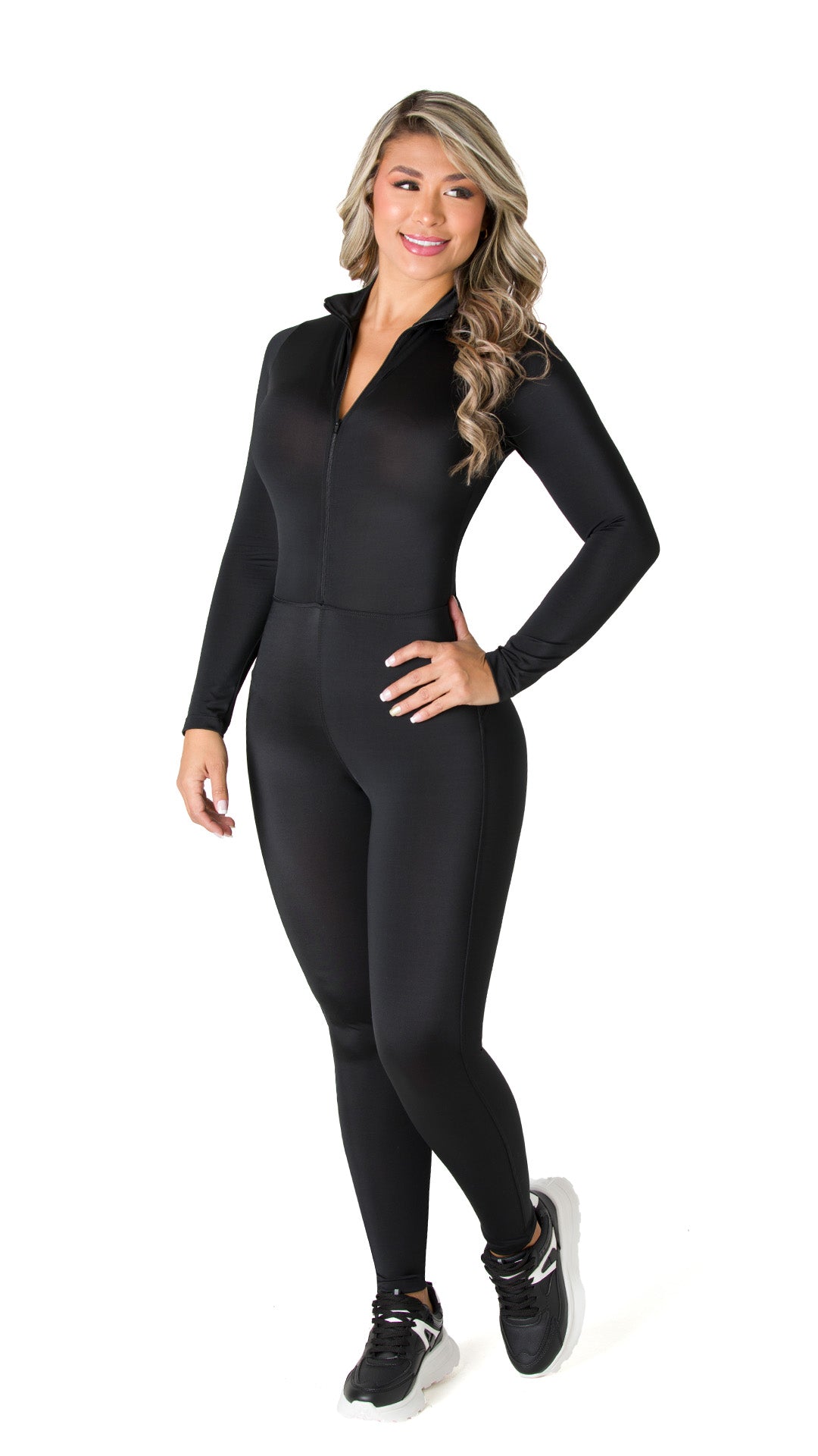 This black jumpsuit with a built-in butt-lifting shorts and tummy control combines elegance and functionality in one piece. It is a modern and versatile staple for your wardrobe. Pair it with a jacket and boots for colder days.