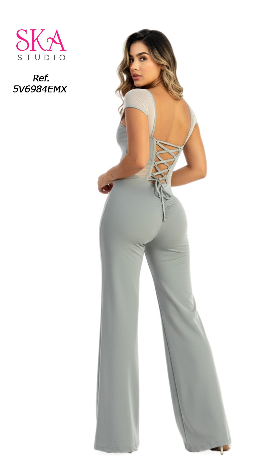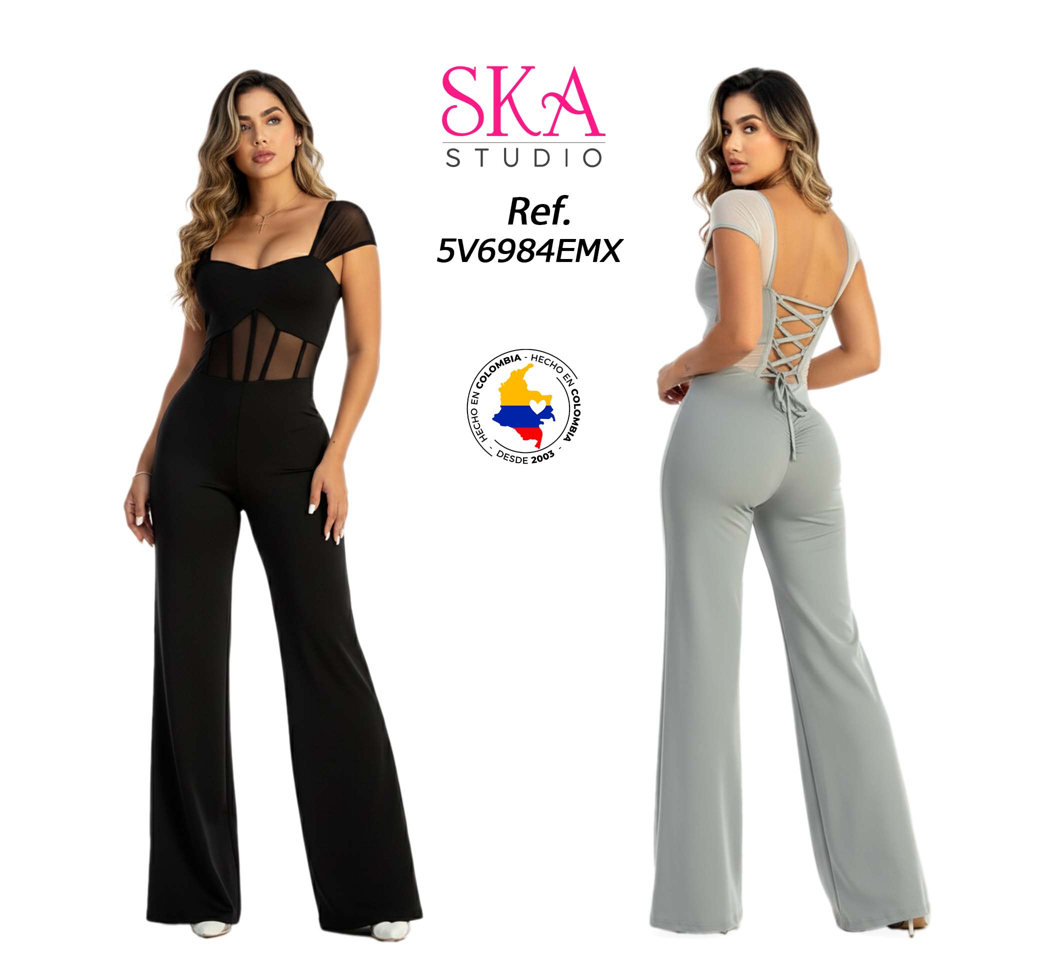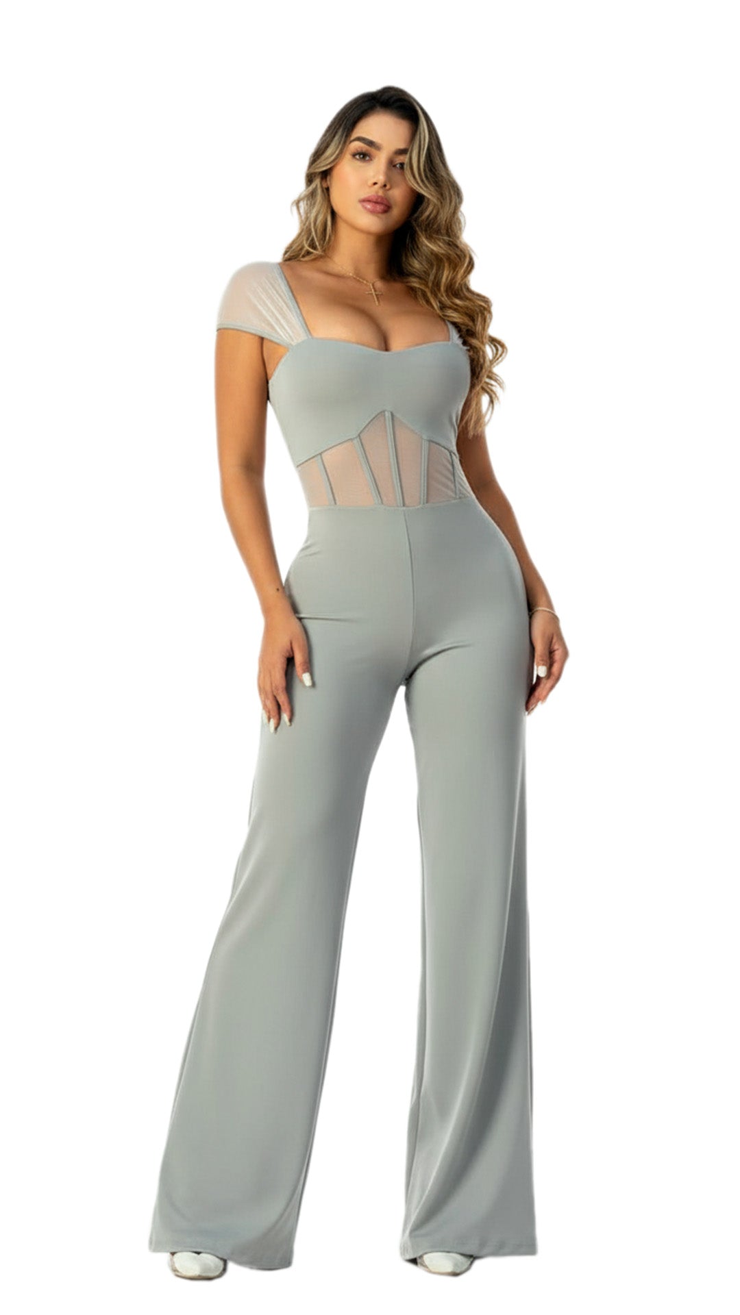 Deslumbra con este enterizo elegante de transparencias, una prenda que combina sensualidad, estilo y sofisticación en un solo diseño. Su corset con mallas translúcidas y estructura tipo faja resalta tu figura, mientras el pantalón de bota ancha alarga visualmente tus piernas, brindándote una silueta estilizada y poderosa.