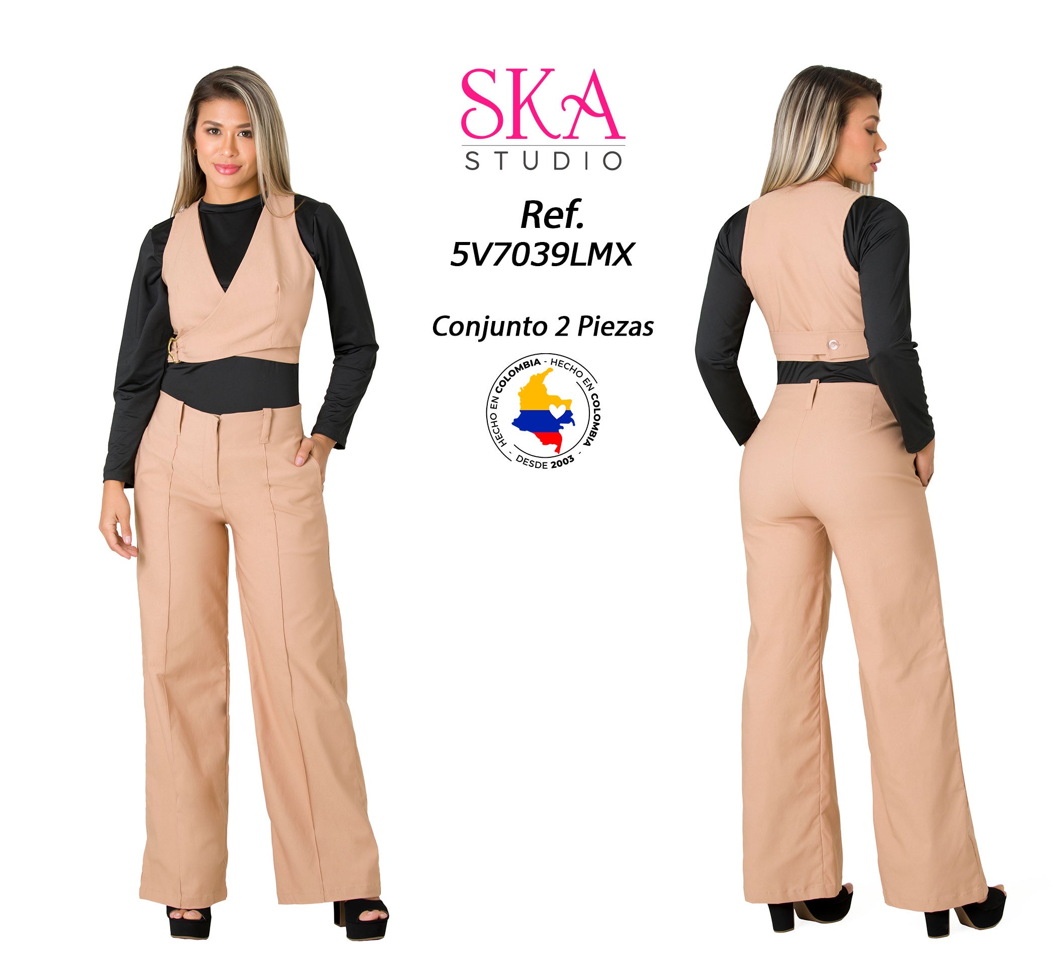 La silueta de tiro alto alarga la figura, mientras el chaleco con detalle lateral añade un toque chic y contemporáneo que eleva cualquier outfit.