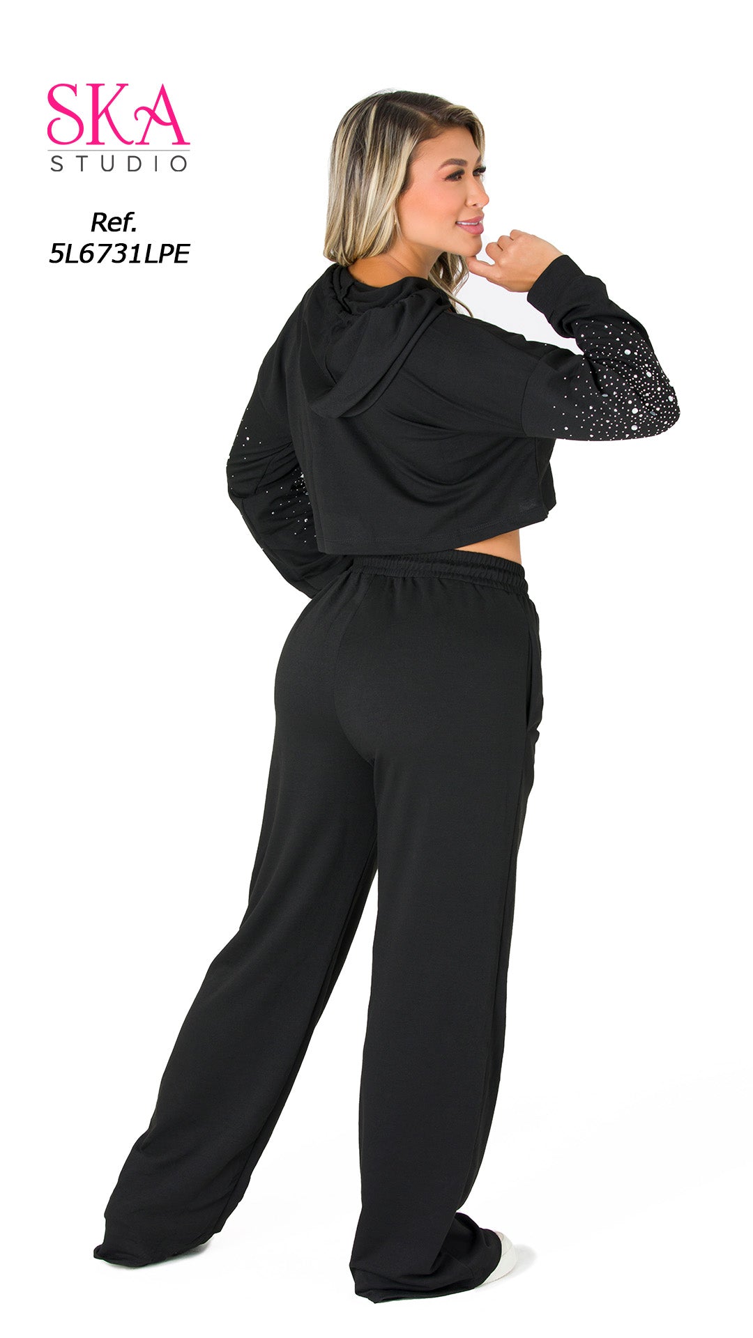 Give your sporty style a modern twist with this black set with shiny details. Designed for women who want to stand out at every moment, this set offers the perfect combination of fashion and functionality. Match it with your favorite sneakers.