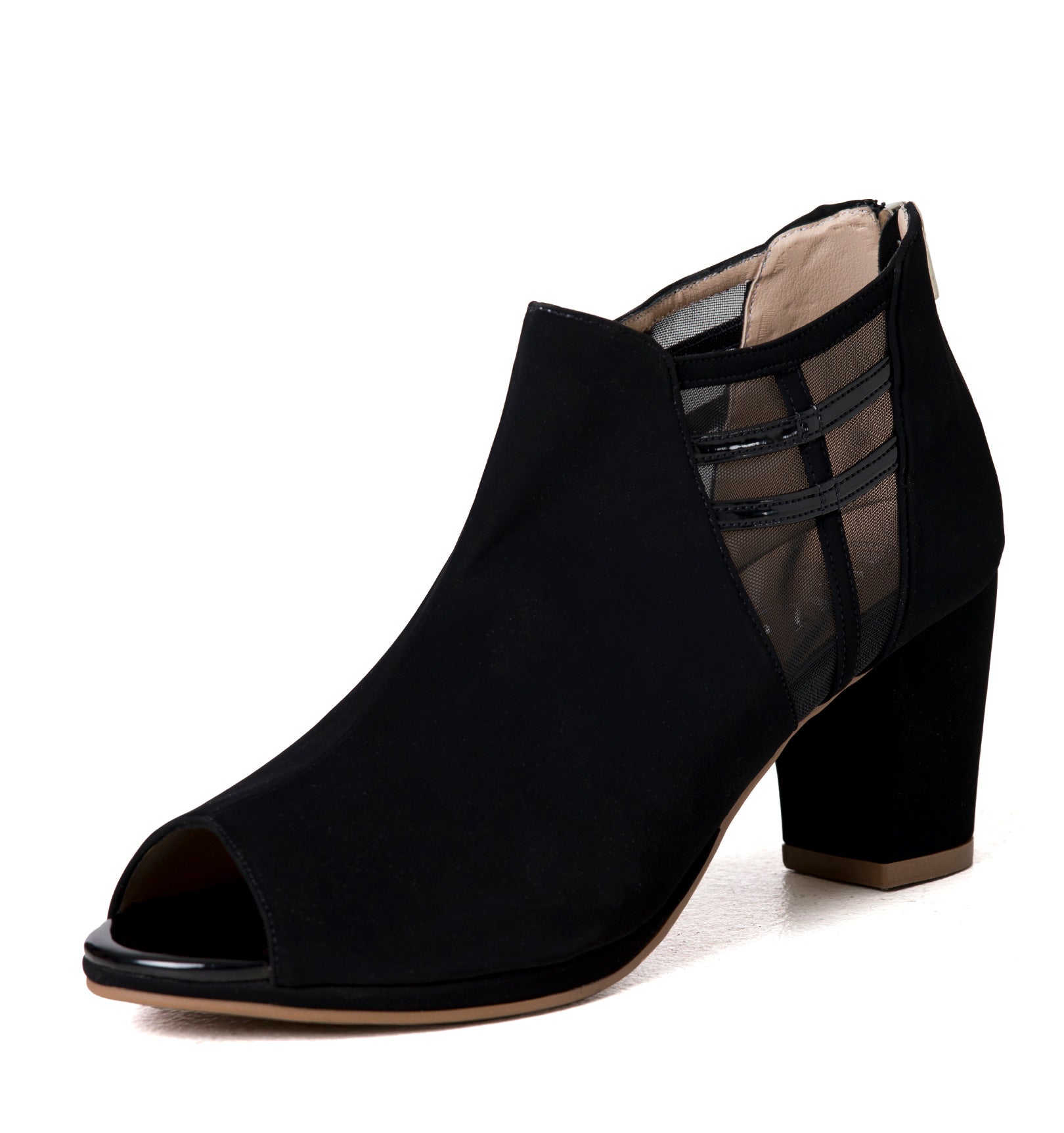 Update your footwear collection with this innovative design. This ankle boot with open toe and block heel has a minimalist look with transparency detail on the side. They provide comfort and versatility when worn.