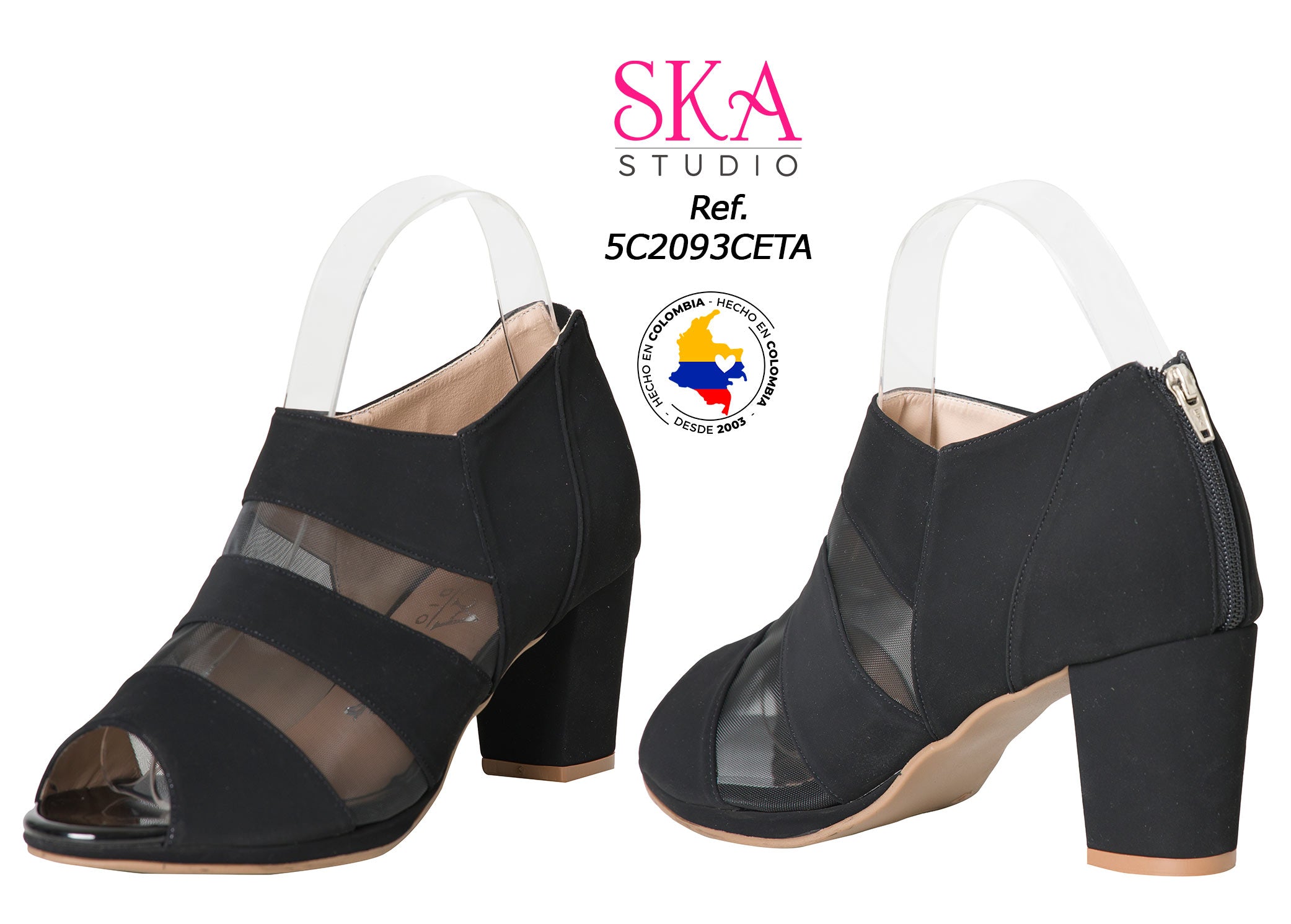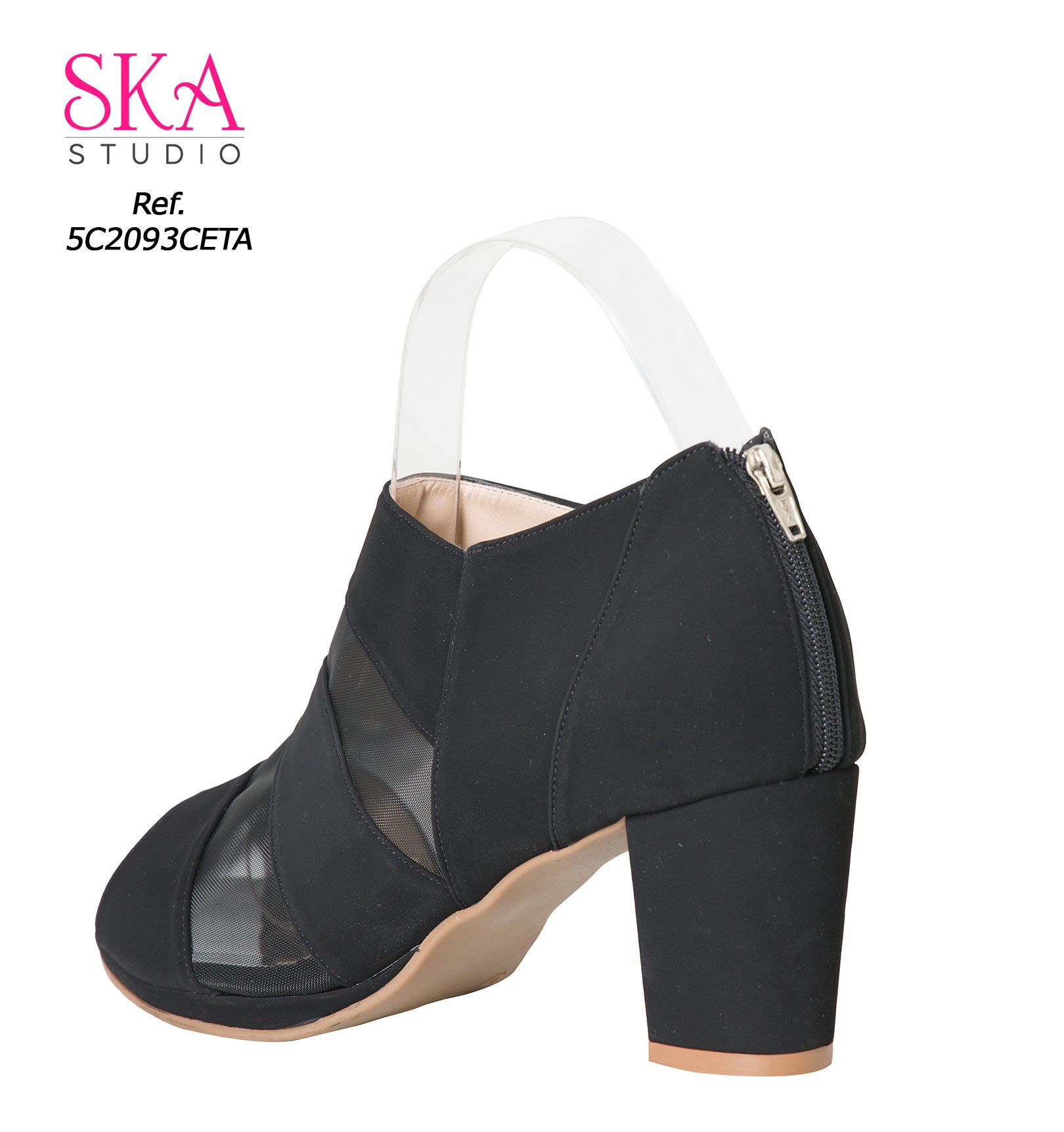 These black sandals with transparent mesh strike the perfect balance between sophistication and comfort. Their wide heel design and mesh details make them a must-have for formal events and special occasions, ensuring comfort with every step.
