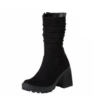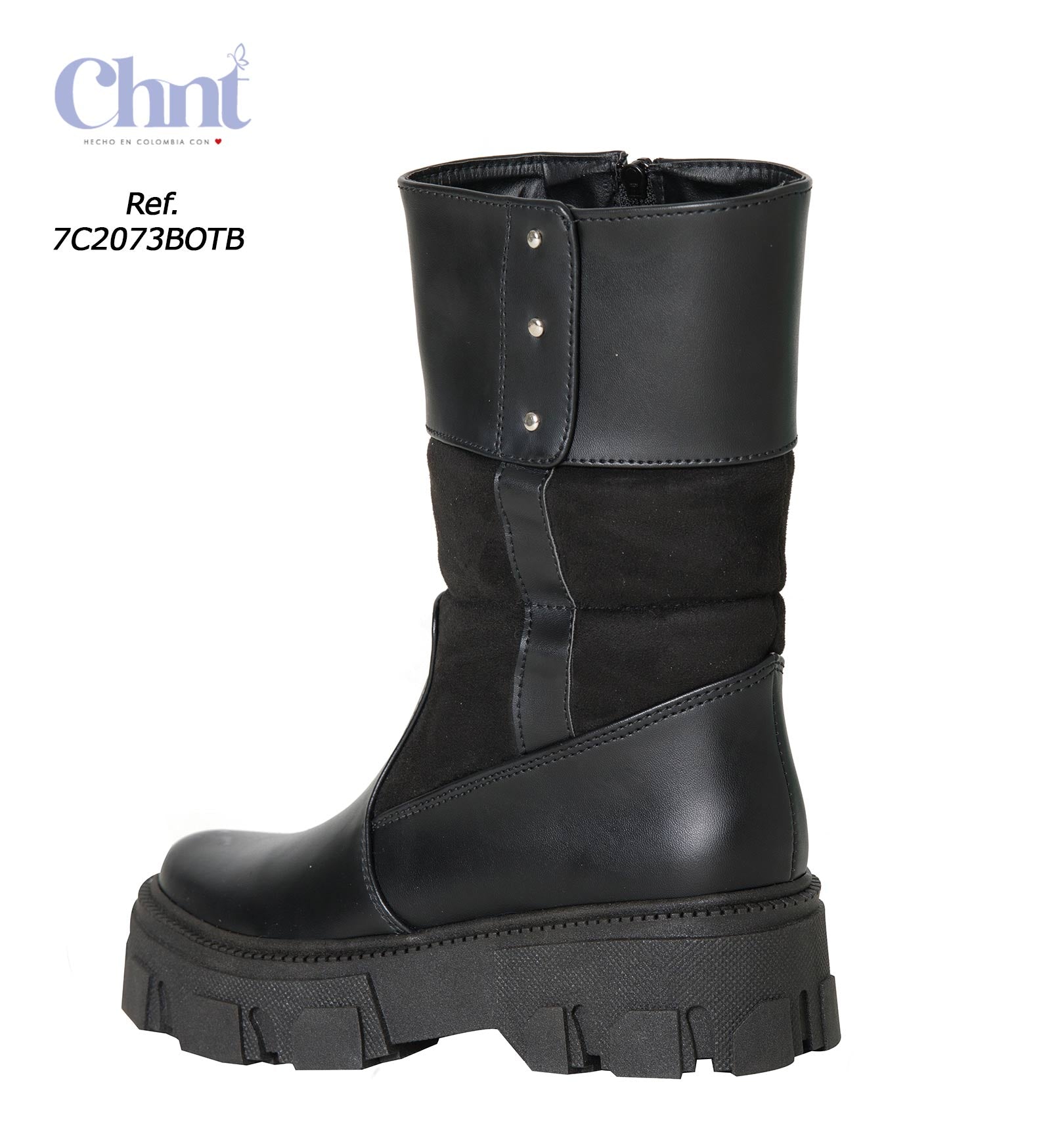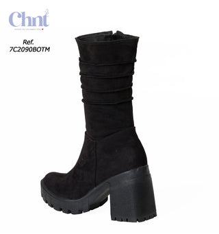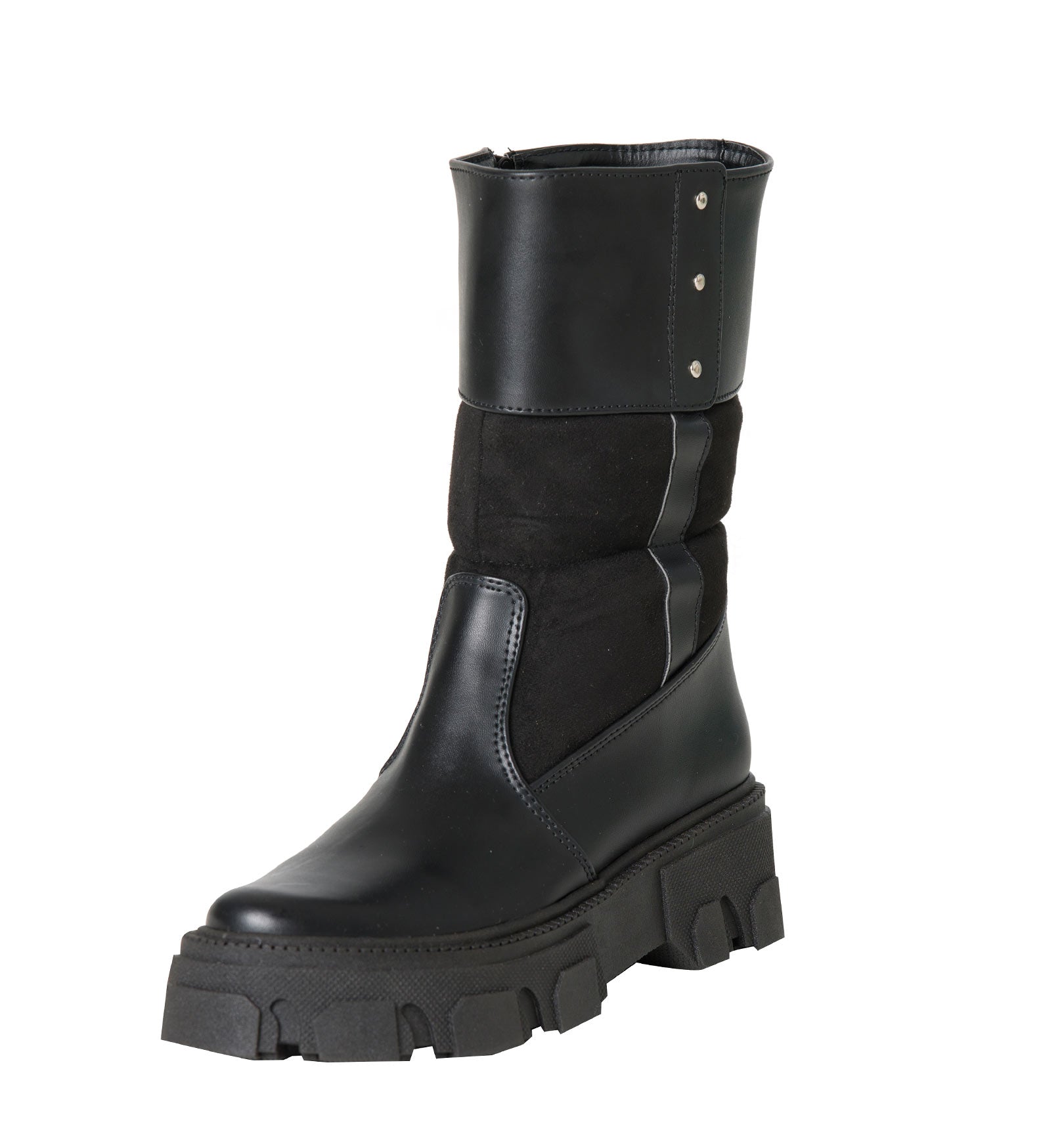 Elevate your urban style with these black platform boots. Their design combines unique materials and details, making them ideal for bold and functional looks. Perfect for keeping you protected on cold or rainy days without sacrificing style.