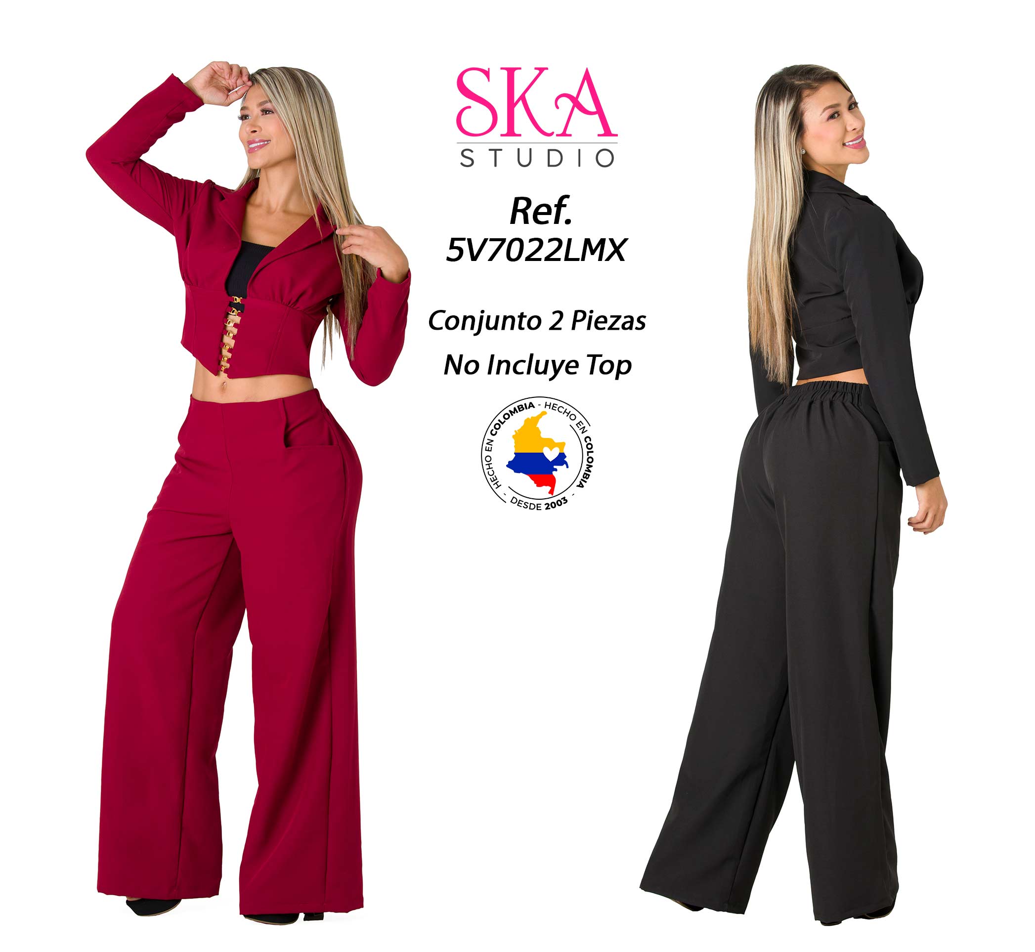 Deslumbra con este conjunto dos piezas, diseñado para que te veas poderosa, moderna y con un estilo único. La chaqueta corta con cierre frontal decorativo destaca tu cintura y crea una silueta impecable, mientras que el pantalón wide leg aporta movimiento, elegancia y ese toque sofisticado que jamás pasa desapercibido.