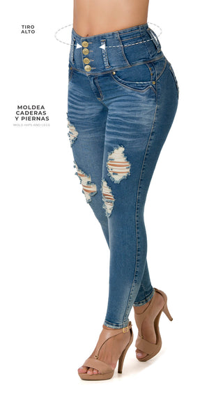 These jeans thanks to its high rise will mold your curves, plus its modern design destroyed and details will give you a chic touch. This garment can be worn at any time for your favorite activities.
