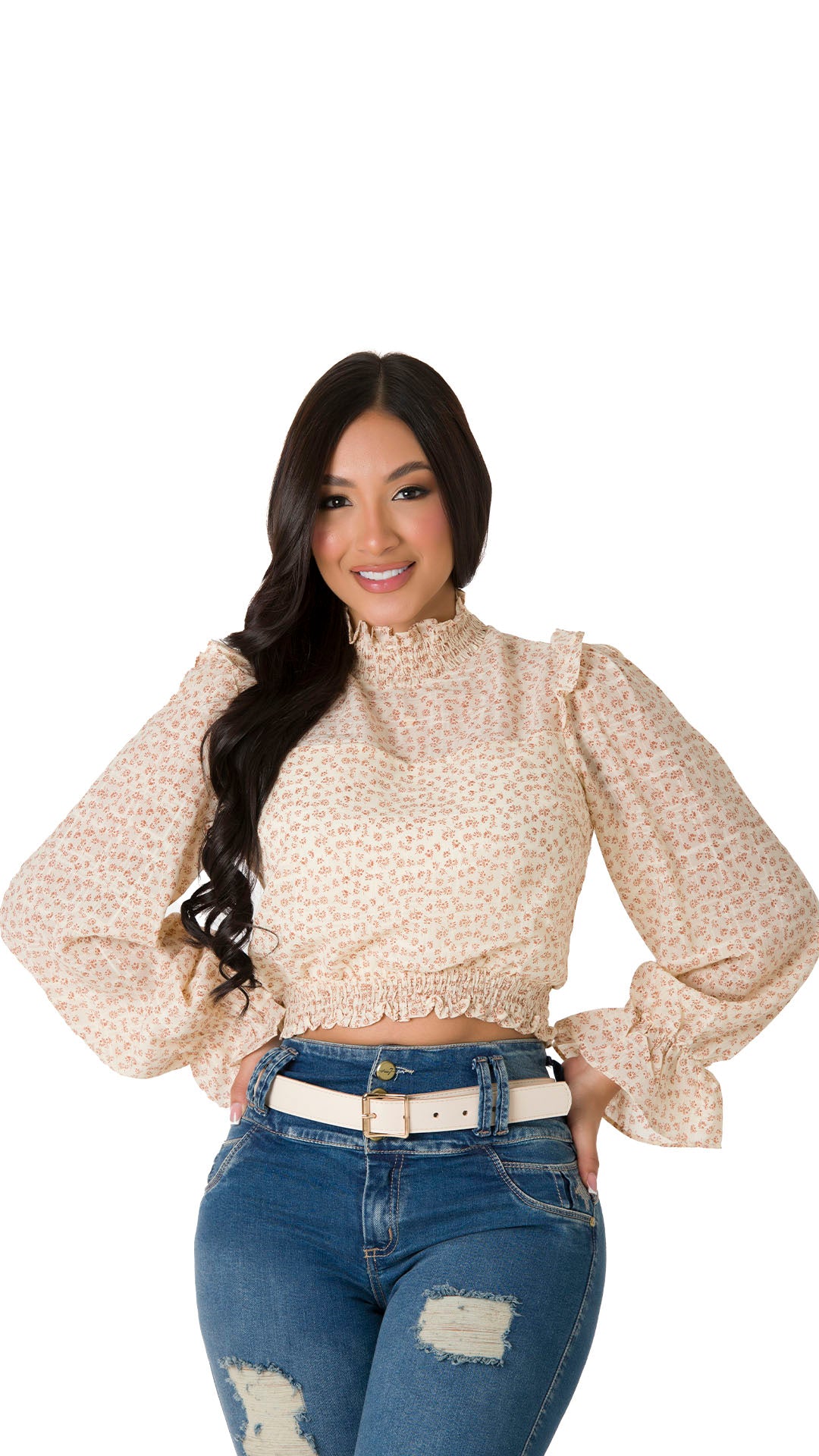 Ajuste Posterior Con Boton Casual Composicion Polyester Cuello Alto Estilo Blusa Manga Larga