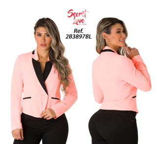 Si lo que estas buscando es un blazer mas sofisticado perfecto para esas reuniones este blazer rosado con bordes negros y simulacro de bolsillos le dará a tu look un estilo único y lo mejor de todo es que lo harás tu favorito.