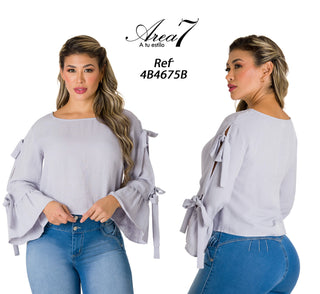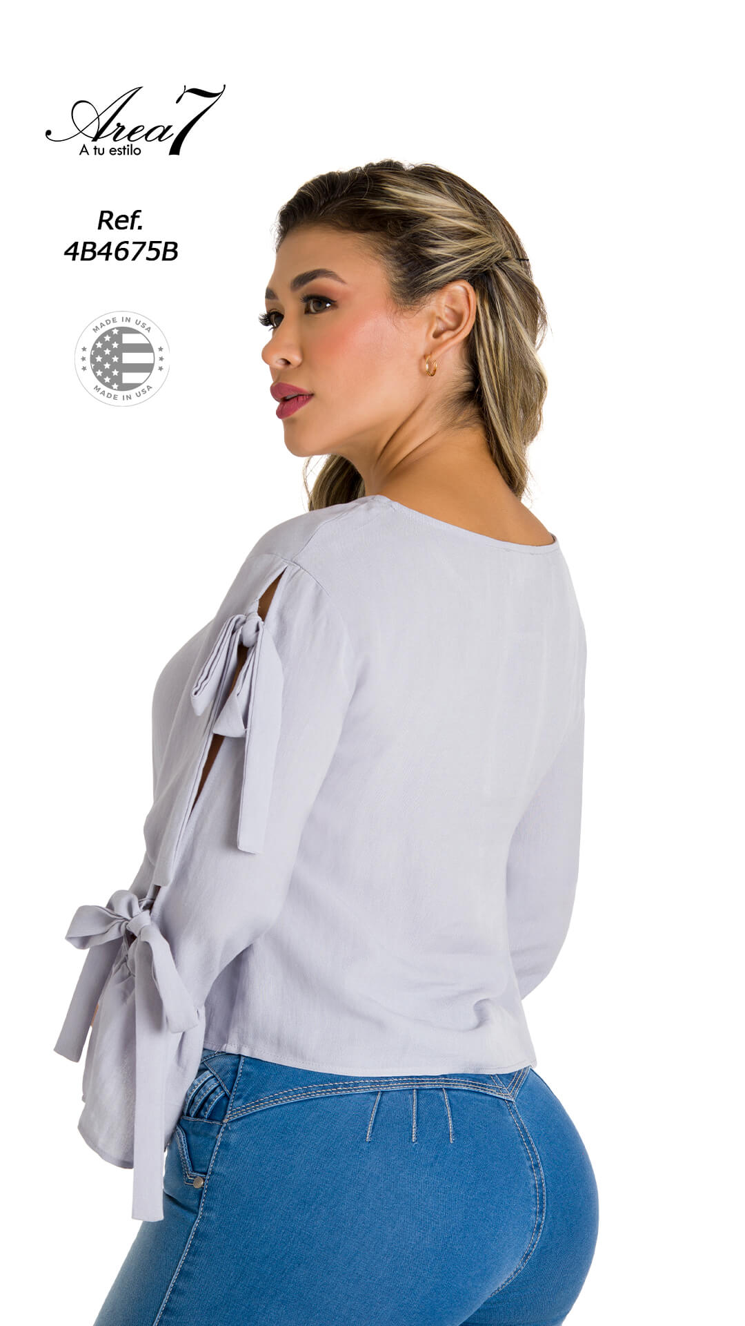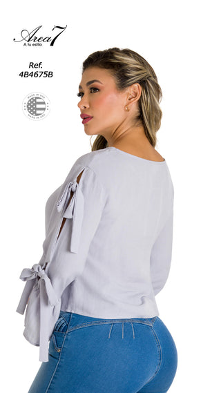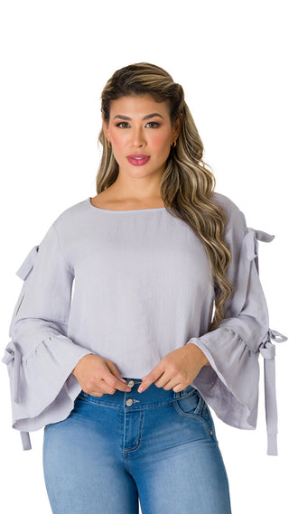 La blusa de manga larga con detalle de lazos es una prenda imprescindible para lucir con estilo. Su diseño elegante y femenino destaca gracias a los encantadores moños en las mangas y el cuello redondo. Combínala con tus jeans favoritos para un look casual chic que te hará destacar en cualquier ocasión.