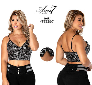 Esta blusa crop en lentejuelas con escote en V será tu mejor elección. Diseñada para que te la puedas poner de día o de noche. Esta prenda es ideal para que resaltes en todo lugar y puedas crear looks glam. Combínala con un jean levantacola o un leggings.