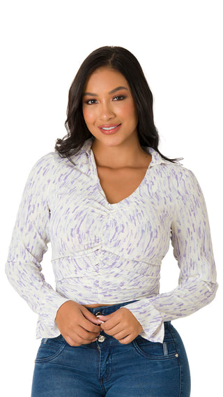 Blusa cuello camisero con estampado y cierre lateral es una blusa elegante y sofisticada. El diseño de la blusa permite que se luzca bien tanto en eventos formales como informales. La blusa está hecha de un material de alta calidad que es suave al tacto y muy cómodo de llevar. El cierre lateral permite que la blusa se ajuste perfectamente al cuerpo.