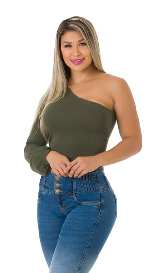 Con la versatilidad que tanto te gusta a la hora de crear tus looks. Esta blusa de corte asimetrico te brindara la comodidad para lucir en tu día. Combinala con nuestros jeans levantacola skinny.