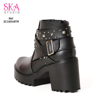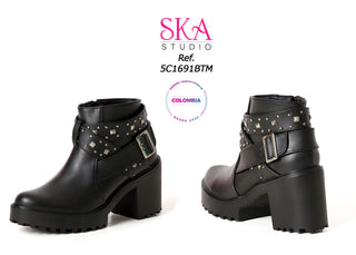 Estos botines son ideales para destacar con un look rockero y atrevido. Su suela chunky y diseño te hará lucir un look diferente. Crea tu outfit con un jean levantacola skinny negro y un blazer.