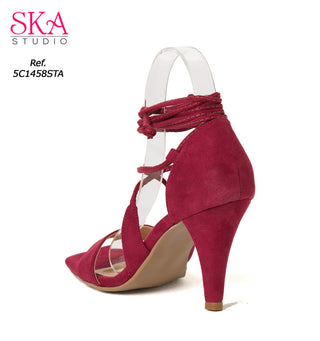 Estas sandalias de tacón cono son perfectas para destacar tu silueta. Su amarre estilo romano te darán un ajuste cómodo agregándole un toque vintage a cualquier conjunto. El color Vinotinto de este calzado es ideal para complementar tus looks de vestidos cortos o jeans levantacola.