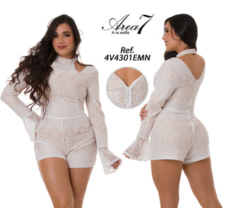 Este enterizo corto y elegante resaltará tu figura de manera sensual. Tiene una manga larga que le da un toque de elegancia y discreción, mientras que el corte en la cintura lo hace extremadamente sexy.