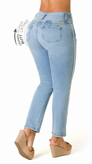 Este jean versátil y cómodo, con un tiro alto que se ve bien en muchos tipos de cuerpo. La bota recta agrega estilo y funciona con cualquier atuendo, por lo que puedes usar estos jeans con todo.