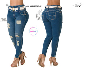 Jeans Colombianos, de tiro alto levanta cola, que ayudan a controlar, comprimen tu abdomen, resaltan tus curvas, estilizan tus piernas, para hacerte ver espectacular, acompáñalos con nuestras hermosas blusas y novedosa línea de calzado.