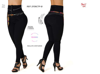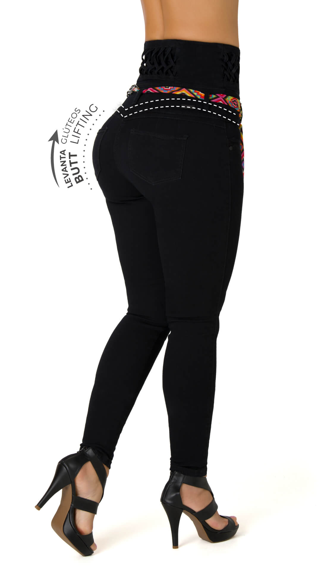 Estos jeans son de talle mas alto de lo normal, por lo que puedes usarlos con blusas cortas y sentirte segura, Es ceñido y se ajusta en todos los lugares correctos sin apretar ni ser incómodo, además moldea y levanta tus glúteos gracias a su patron de costuras en forma de corazón que le dan una horma favorecedora ¡Es perfecto!Jeans Colombianos, de tiro alto levanta cola, que ayudan a controlar, comprimen tu abdomen, resaltan tus curvas, estilizan tus piernas, para hacerte ver espectacular, acompáñalos con nuestras hermosas blusas y novedosa línea de calzado.