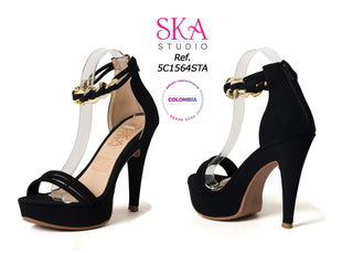 ¡Descubre la sandalia de tacón alta elegante que te hará resaltar! Con su estilo irresistible, esta sandalia presenta una cadena en color dorado y tiras negras que le dan un toque de glamour a tu look. Su ajuste en el talón con cierre asegura comodidad y seguridad al caminar. Con un diseño sexy y sofisticado, esta sandalia es perfecta para lucir en ocasiones especiales. No sacrifiques el estilo por la altura, ya que te sentirás cómoda y segura con este calzado. ¡Hazte notar con esta sandalia de tacón alta elegante y marca la diferencia en cualquier evento!